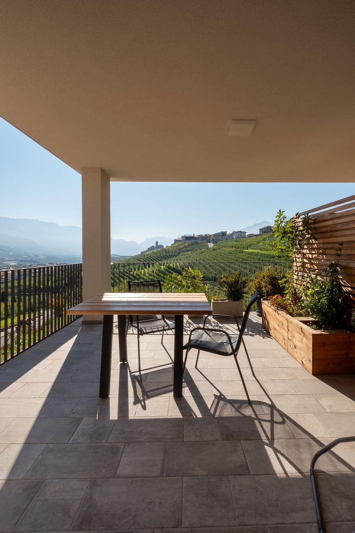 Liebevoll & modern eingerichtete Ferienwohnung, große Sonnenterasse mit bequemen Gartenmöbeln & das einzigartige Südtiroler Bergpanorama. Die Unterkunft in Kaltern liegt 5 entspannte Gehminuten vom hystorischen Ortskern entfernt. In unmittelbarer Nähe befinden sich u. a.: der Kalterer See, der Mendelpass, die Montiggler Seen und die Stadt Bozen. Die Unterkunft ist neu und überzeugt durch moderne Einrichtung & ihre idyllische, ruhige Lage. Zur Ruhe kommen, entspannen, Zweisamkeit genießen