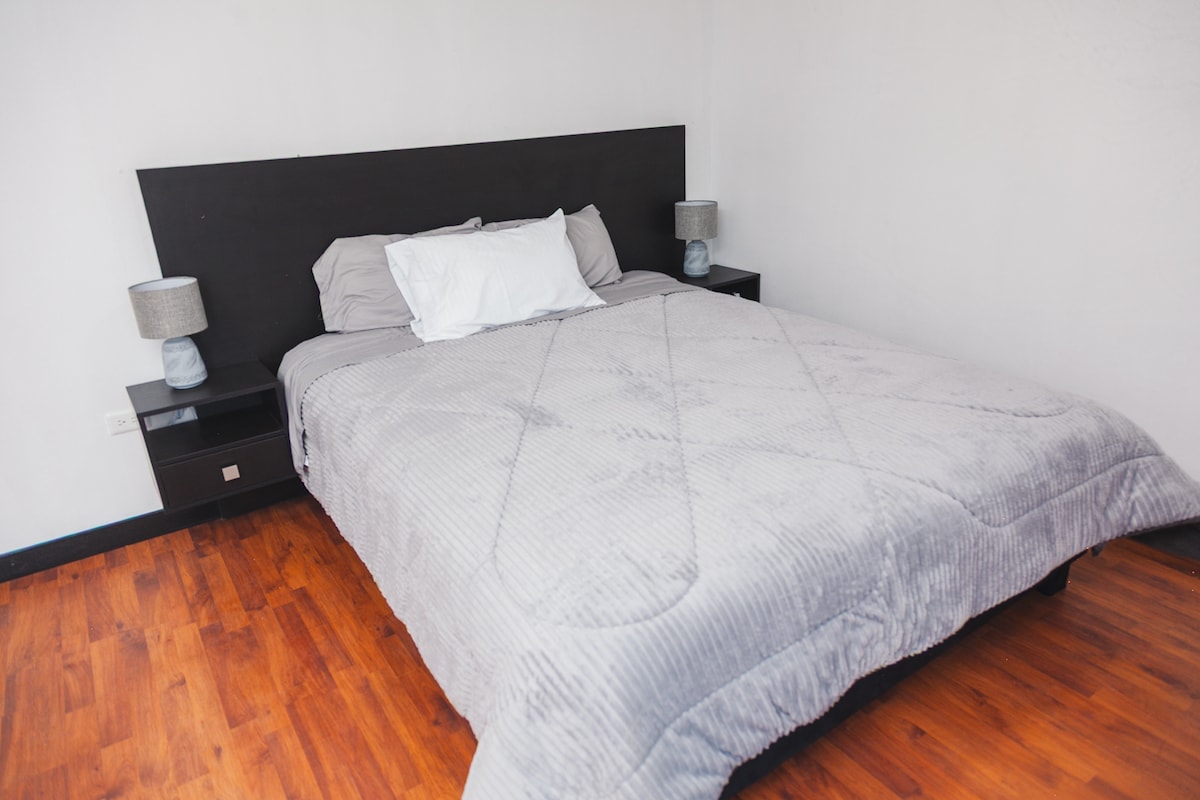 Das Hotel liegt in Calderón, 25 Minuten von der Mitte der Welt und dem Flughafen, 5 Minuten vom Krankenhaus Calderón, in der Nähe des Ligastadions, 25 Minuten von der Innenstadt entfernt. Du gelangst dorthin über die Avenida Simón Bolívar und die Avenida Occidental. Die Suite bietet ein Doppelbett, ein Schlafsofa, eine voll ausgestattete Küche, einen privaten Whirlpool, einen Smart-TV und WLAN. Elektrischer Zaun und externe Kameras, ein paar Minuten von Einkaufszentren und Multiplexen entfernt. In der Nähe der Polizeischule und Militärschule