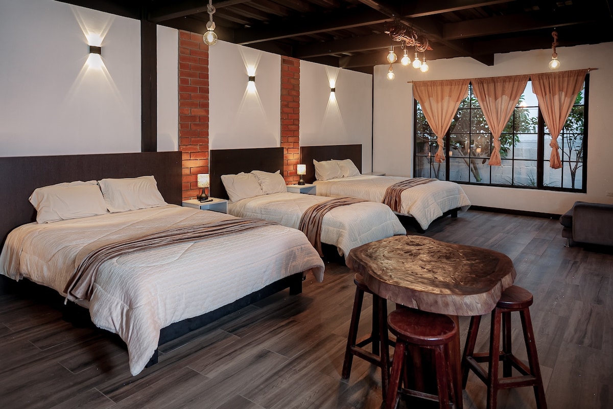 Mini Suite 8 Minuten vom Flughafen Quito entfernt. Frühstück inbegriffen Flughafentransfers mit Taxis, denen wir vertrauen (kostenpflichtig) Sicherheit, Outdoor-Überwachungssystem. Gärten und Natur. Privates Badezimmer mit Warmwasser mit Calefón. 24-Stunden-Rezeption Ruhig und unabhängig.