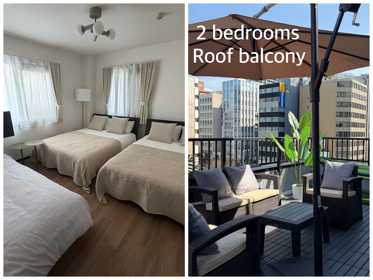 In der Nähe von Dotonbori|2 Minuten mit der U-Bahn|120 m² 3 Schlafzimmer für 8|Terrasse