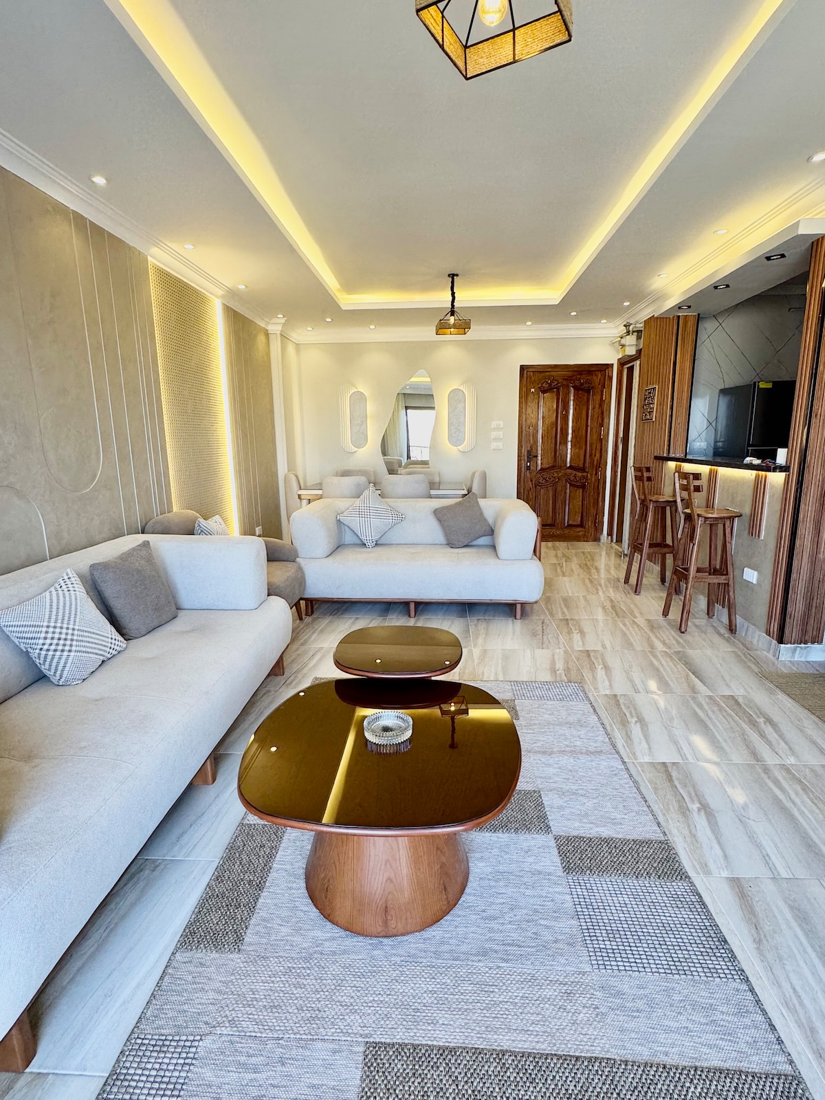 🏛️ Der Khan der Pyramiden – ein einzigartiger Rückzugsort 🌅 Erlebe einen einzigartigen Aufenthalt, bei dem handgefertigtes Design auf ein uraltes Wunder trifft 🏜️. Diese ruhige Wohnung in El Haram bietet einen direkten Blick auf die Pyramiden von deinem Bett 🛏️ oder Whirlpool 🛁 aus, was jeden Morgen wirklich magisch macht. Jede Ecke ist mit erdigen Texturen 🌿, kuratiertem Dekor 🏺 und natürlichem Licht ☀️ gefüllt, wodurch ein Raum geschaffen wird, der für langsames Leben, erholsame Nächte und unvergessliche Morgenstunden konzipiert ist.
