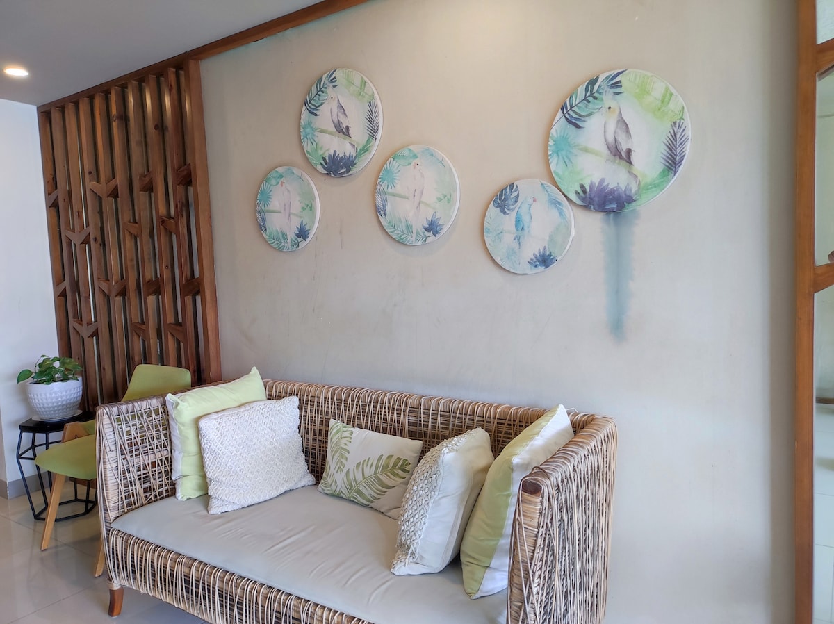 Entspanne dich mit der ganzen Familie in dieser friedlichen Unterkunft. Ein komplettes Haus, damit du dich im Urlaub wie zu Hause fühlen kannst. Dein zweites Zuhause. Trendige, stilvolle Japandi-philippinische Unterkunft, nur 3 Minuten von nahe gelegenen Stränden entfernt. Etwa 10 Minuten entfernt vom Flughafen und dem schönen Alona Beach in Panglao. Du hast Zugang zum öffentlichen Schwimmbad und zum Fitnessraum. Dies ist ein ästhetisches Japandi-philippinisches Innendesign-Zuhause.