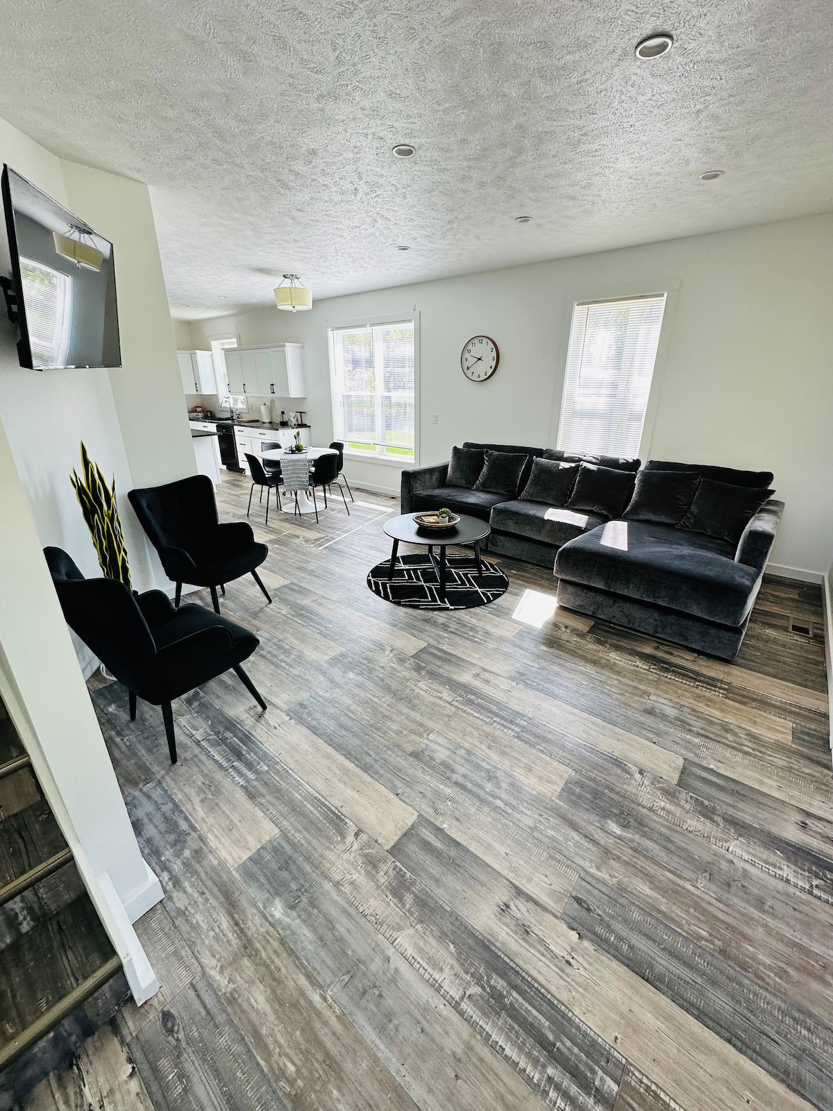Alles, was du brauchst, um dich zu entspannen und neue Energie zu tanken, in einem gemütlichen Raum. Eigener Eingang. Diese Suite ist ein offener Grundriss mit einer kleinen Küchenzeile, die einen Kühlschrank, eine Mikrowelle und einen Herd mit grundlegenden Küchenutensilien und Geschirr umfasst. Sie befindet sich in der Stadt in der Nähe von Geschäften und Restaurants. Schöne Terrasse hinten mit überdachtem Bereich zum Grillen. Nur wenige Gehminuten vom North Country Trail und 10 Minuten vom neuen Dragon Trail entfernt. Es gibt ein Queensize-Bett und eine Couch. Es bietet bequem Platz für zwei Gäste.