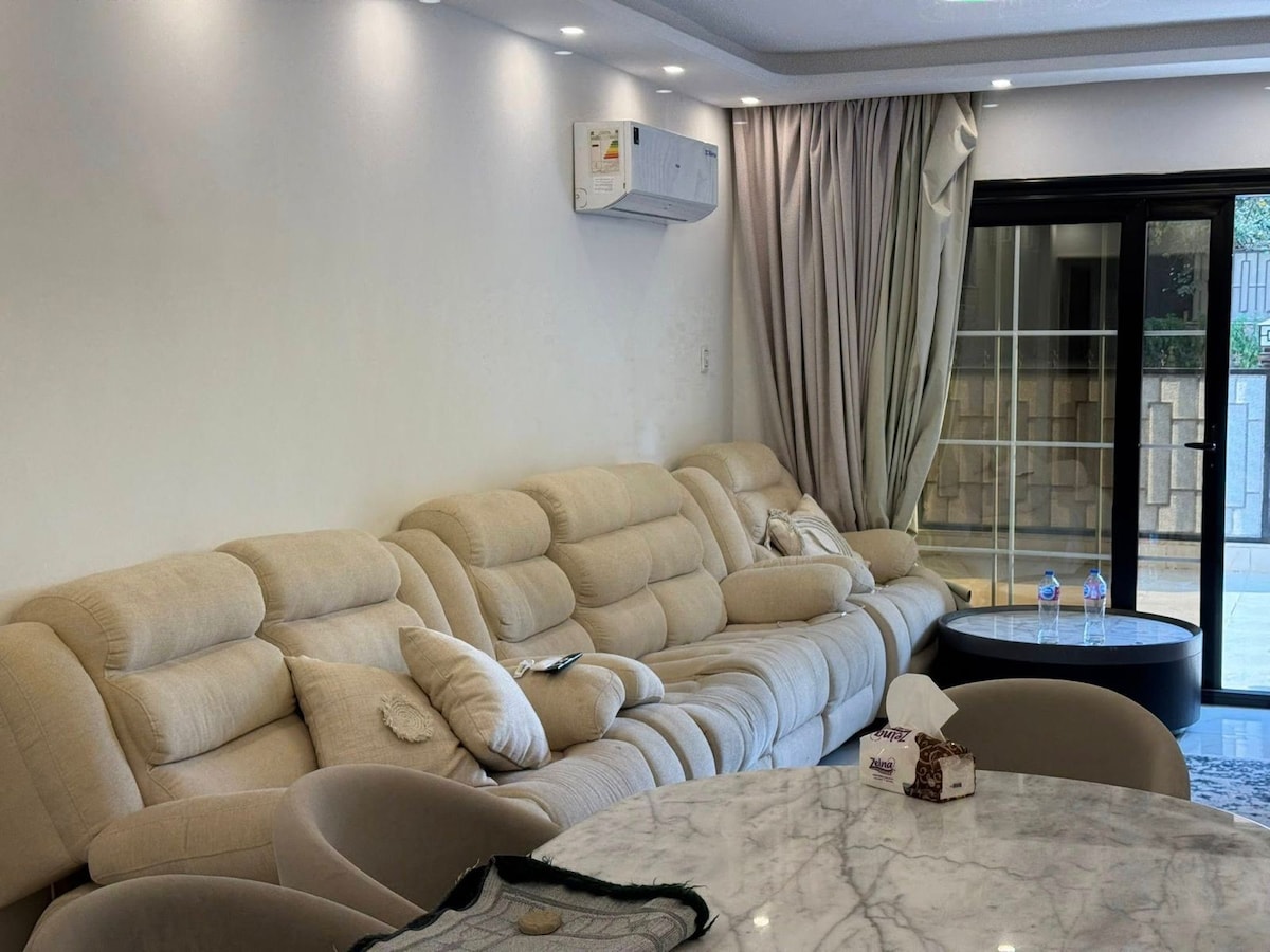 Willkommen in dieser stilvollen und modernen 2-Zimmer-Wohnung in einer der prestigeträchtigsten Gegenden von New Kairo. Dieser einzigartige Raum ist mit hochwertigen Möbeln ausgestattet und bietet sowohl Komfort als auch Eleganz. Der offene Wohnbereich mündet nahtlos in eine voll ausgestattete Küche, die sich perfekt für modernes Wohnen eignet. Die Wohnung verfügt über wunderschön eingerichtete Schlafzimmer und hochwertige Oberflächen. Draußen genießen Sie Ihren privaten Garten mit bequemen Sitzgelegenheiten und einigen Maschinengeräten, die sowohl Entspannung als auch Praktikabilität bieten.