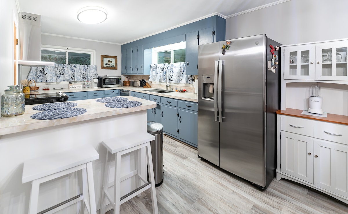 Willkommen in unserem charmanten Bauernhaus im atemberaubenden Uwharrie National Forest! Dieses komplett renovierte Juwel befindet sich auf einem weitläufigen 44 Hektar großen Grundstück und bietet einen ruhigen Rückzugsort. Mit 3 gemütlichen Schlafzimmern bietet unser Bauernhaus bequem Familien und kleine Gruppen, die einen ruhigen Rückzugsort suchen. Die Inneneinrichtung ist durchdacht gestaltet und verfügt über moderne Annehmlichkeiten und rustikalen Charme, die sich nahtlos verschmelzen. Drei Smart-TVs und Glasfaser-Internet sorgen dafür, dass du in Verbindung bleibst. Schaukelbett, Wanderweg!