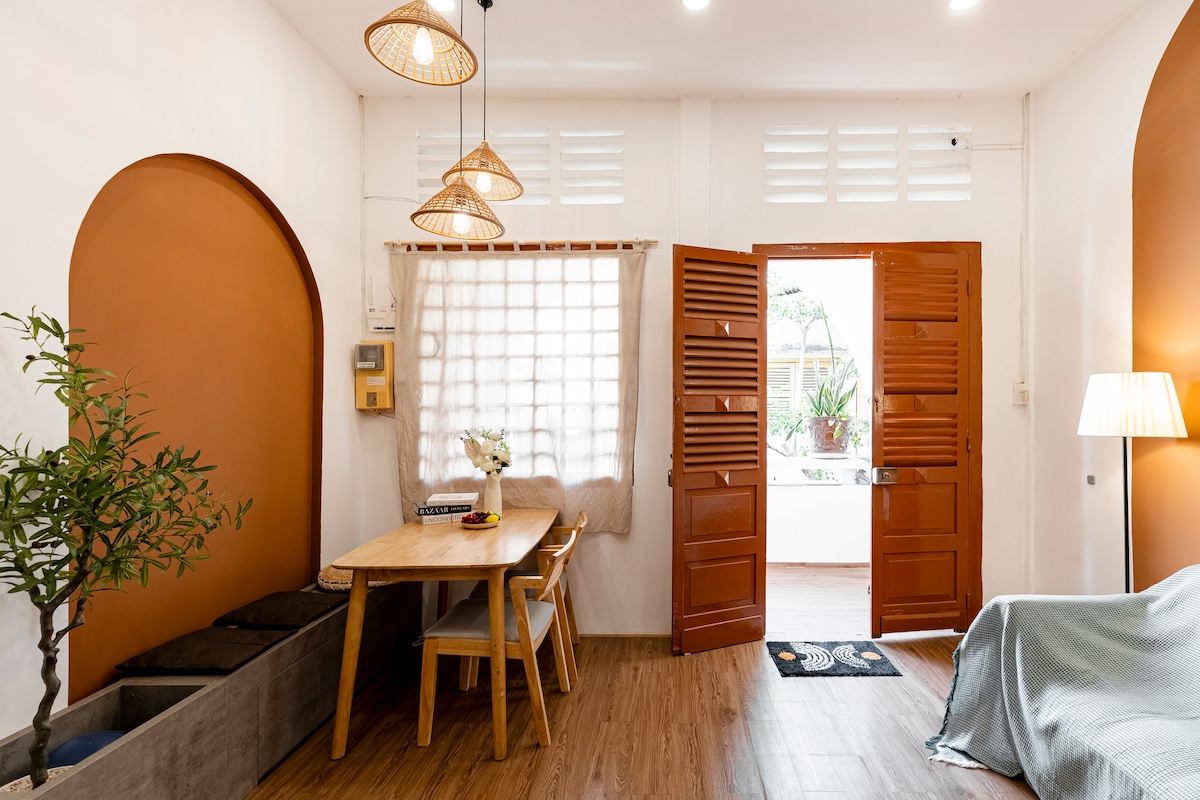 -Welcome to Em’s Home, where you can experience Saigon at its best. Our cosy studio is located right in the central of Saigon and has been fully and beautifully renovated. Situated on the 1st floor of the house with a little indoor garden. The design of studio inspired by the traiditional materials mix up with morden funitures, the red-tile floor is highlighted for all the room. Designed for travelers and art lovers in one of Saigon’s best residential districts.