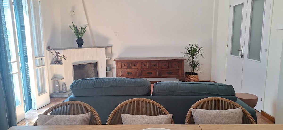 Welcome to Bluewood Retreat, a beautifully restored 2-bedroom apartment with a home office, where vintage charm meets modern sophistication. Set right in the heart of Nicosia, within the historic city walls, this spacious 125m² home is the perfect base for families, digital nomads, and long-stay travelers seeking both comfort and character. The apartment preserves the elegance of its original architecture while seamlessly blending it with modern design touches.