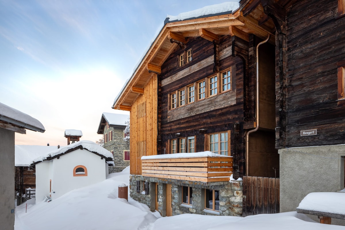 Mit viel Liebe zum Detail neu umgebauter Walliserstadel aus einem Mix aus Alt und Neu mit LED-Beleuchtung passend für jedes Ambiente. Duftendes Arven-Doppelbett, Schlafsofa mit Lattenrost im Schlafzimmer für 3. Person. Moderne Küche mit Kombisteam-Backofen, gemütlicher Essecke und Holzofennähe. Frei stehendes Chalet mit Blick auf die Berge und einem faszinierenden Abendpanorama. HOT-POT mit Massagebrause (Auf Anfrage und gegen Aufpreis/inkl. Bademäntel: 2 Tage 100Fr./ 3.Tag+30Fr./4.Tag+30Fr.)