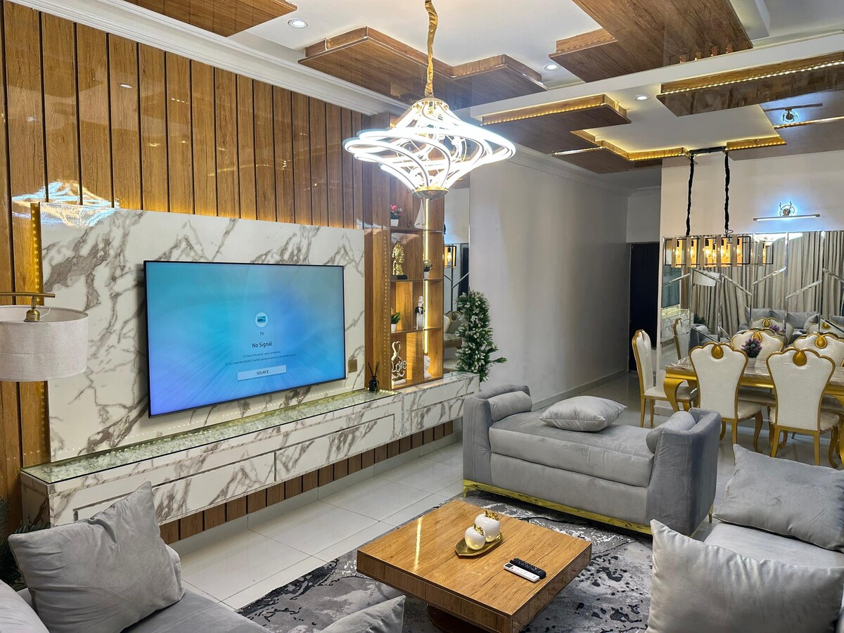 Abholung/Rückgabe am Flughafen, täglicher Fahrerservice gegen Gebühr. Royalty Luxury Serviced Apartment wurde als Zuhause für Royals konzipiert. Es ist ruhig, einzigartig, stilvoll und gemütlich mit exquisiten Möbeln, um ein Gefühl von einem komfortablen Zuhause zu geben. Das Hotel liegt in einem ruhigen, gesicherten Anwesen mit bequemem Zugang zu allen Teilen von Abj. 247 Strom mit Solar-/Wechselrichtersystemen, Glasfaser-WLAN, Ventilator, voll ausgestattete moderne Küche, bewaffnete Sicherheit. Billardtisch, Entspannungsschaukel, Swimmingpool und Waschmaschine