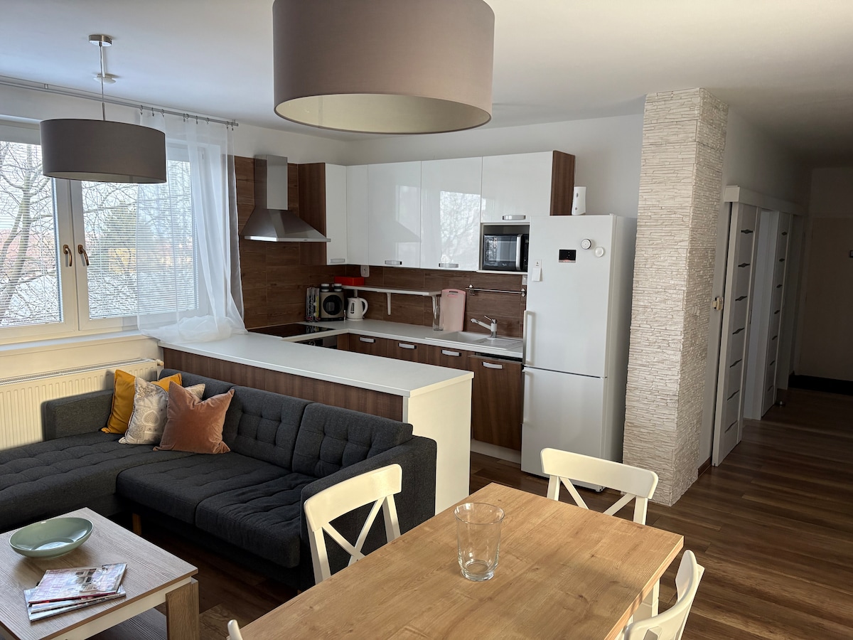 Die Wohnung ist auch ideal, 10 Gehminuten vom Hauptstadtzentrum + Homeoffice entfernt, da sie Zimmer mit Türen trennt. 3-Zimmer-Wohnung 64 m², Küche (3 x 3,5), Wohnzimmer mit einem Bett (6,5 x 3,5), Schlafzimmer mit einem großen Bett (3,5 x 3,5), separates WC, Restaurants und Einkaufsmöglichkeiten 5 Gehminuten von der Wohnung entfernt. Parken kostenlos. Es ist auch möglich, ein Angebot für den Transfer vom Flughafen zu machen. Flughafen Bratislava oder Wien