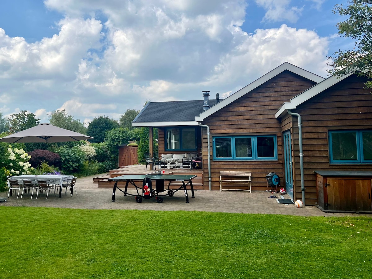 Ein geräumiges, umweltfreundliches Holzhaus, in dem du nicht um während deines Aufenthalts zu kochen! Es gibt einen vegetarischen/ veganen Catering-Service. Taxi-Service bis 5 Personen. Das Haus liegt am Fluss und blickt auf eine typische holländische Mühle. Mitten in den Niederlanden mit dem Besten aus beiden Welten: Natur und Städte. Diese wasserreiche Gegend hat im oder um das Wasser herum viel zu tun: Schwimmen, Wandern, Radfahren. Oder besuche eine der vielen Städte: Amsterdam, Utrecht, Gouda, Den Haag, Rotterdam
