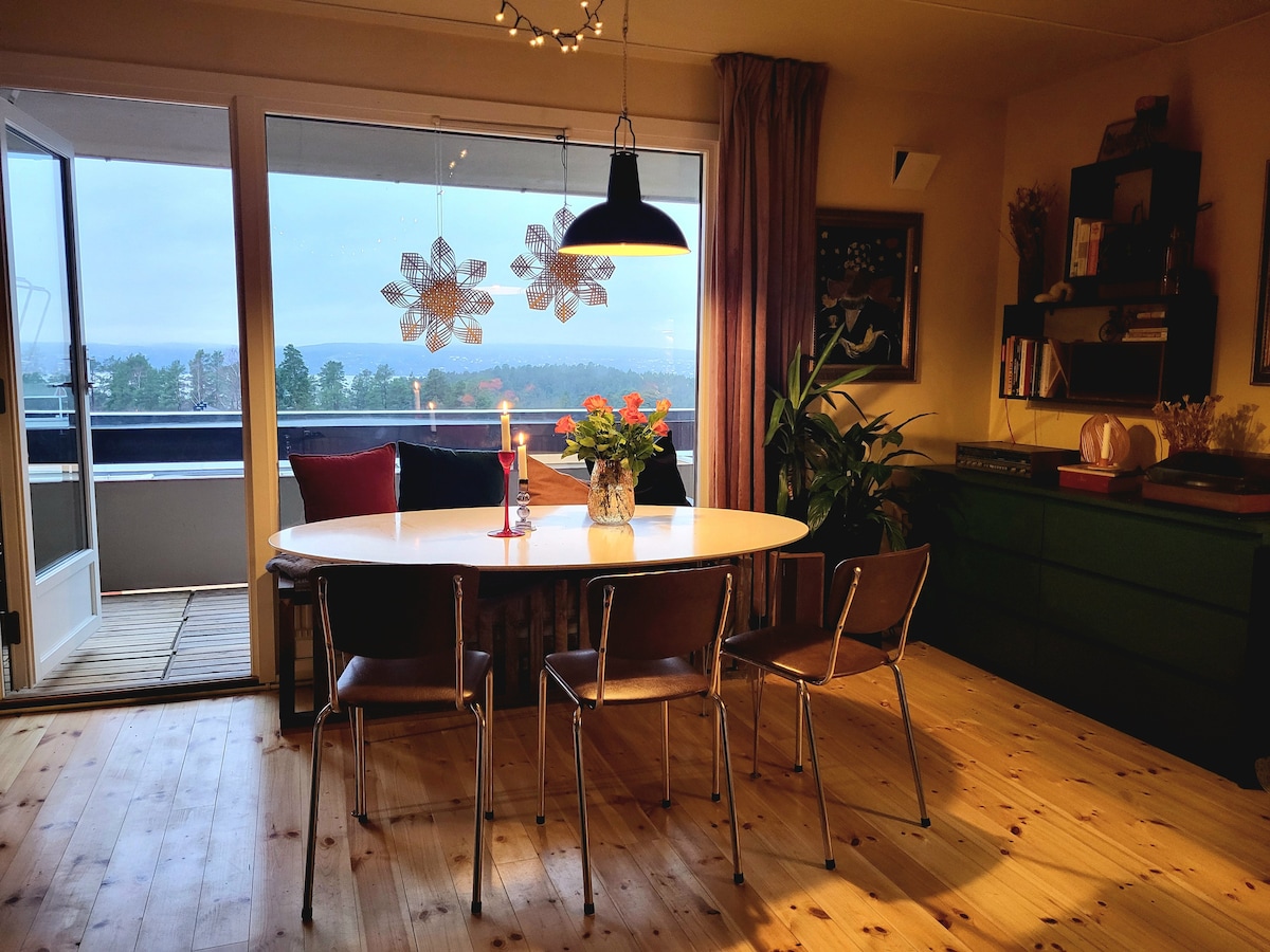 Watch the seasons change from your bed and unwind in my luxurious top-floor apartment with incredible views of Pollevann lake & Norwegian nature reserve! Close to adventure: 6 min drive or bus to Tusenfryd, 10 min walk to Oslo/Tusenfryd bus (26 min to Oslo S), and to freshwater swimming. Fjord beaches are 5 min away by car. Nice trekking area. Enjoy Moroccan decor, a Nespresso on the balcony, and the nearby playground. Explore the ancient Nøstvedt Stone Age site and a BBQ hut just steps away.