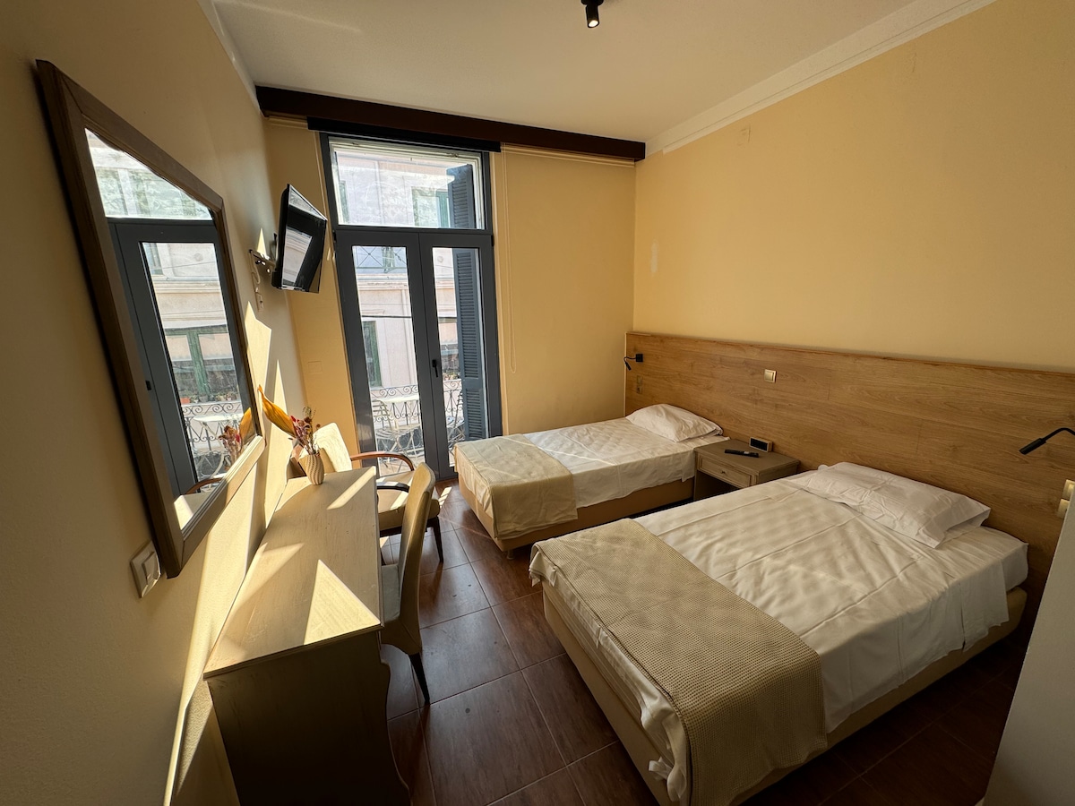 Willkommen in unserem Deluxe-Zimmer, ein idealer Rückzugsort im Stadtzentrum. Diese Unterkunft verfügt über 2 Einzelbetten, Die Küchenzeile ist ausgestattet, um die Möglichkeit zu bieten, Snacks zuzubereiten und Momente der Entspannung zu genießen. Die Lage ist ideal, in unmittelbarer Nähe von Sehenswürdigkeiten, Cafés und Restaurants. Wir bieten allen modernen Komfort, wie WLAN und Klimaanlage, für einen komfortablen Aufenthalt. Wir freuen uns, Sie bei uns begrüßen zu dürfen!