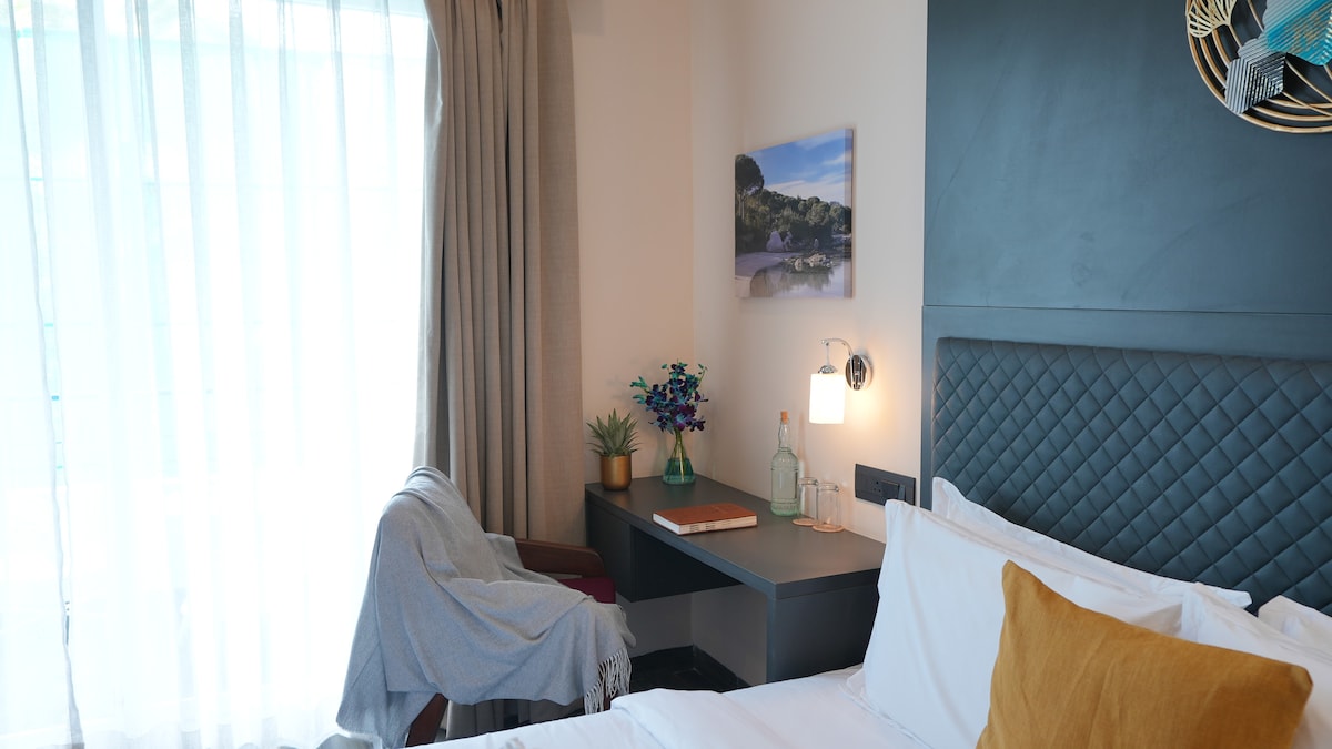 Nestled in Vagator, discover a premium room with an en suite bathroom and an attached balcony for relaxation. Elegantly furnished, the room has essential amenities such as a sofa, wardrobe, and work table for your comfort. Enjoy exclusive facilities like an outdoor pool, bar, restaurant, and conference room, ensuring a memorable vacation experience. Served by a 5-star hospitality team, the property embraces the philosophy of “Atithi Devo Bhava.