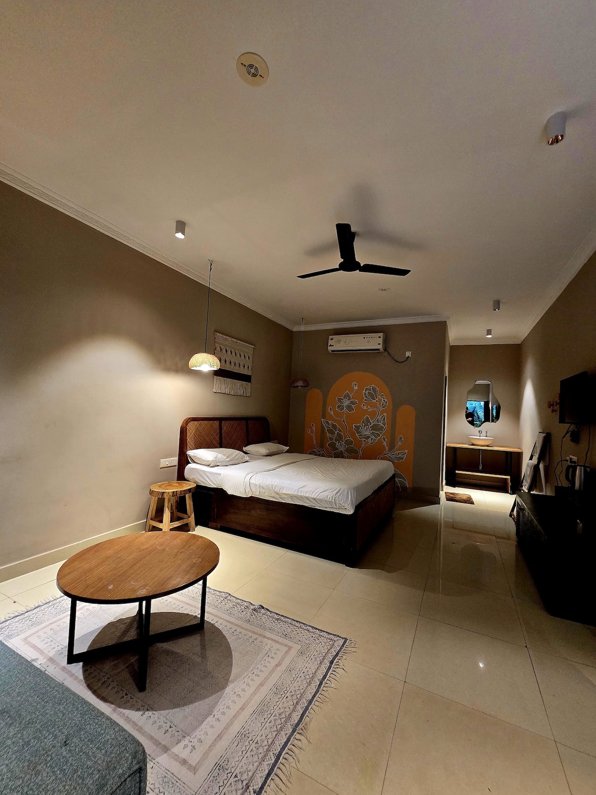 Dies sind 2 Einheiten unserer luxuriösen Semi-Studios mit Pool in unserem Boutique-Hotel, die Stil mit Einfachheit verbinden, um dir das „Zuhause“ -Feeling zu geben, nach dem du dich sehnst. Jedes verfügt über ein großes bequemes Bett, in das du dich gerne versinken würdest, leckeres Essen und visuelle Köstlichkeiten überall, Diese Zimmer versprechen, nicht nur deine Augen, sondern auch dein Herz zu fangen. Im Herzen von North Goa, 5 Minuten von Mall De Goa entfernt, befinden sich alle anderen Hotspots, einschließlich Strände, Partyorte, historische Orte usw., in einer Entfernung von ca. 5-15 km.