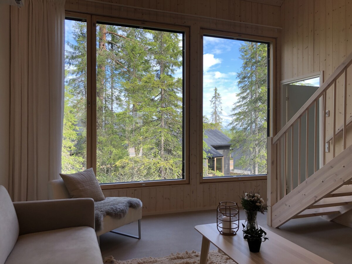 Das Vuokatti-Wochenende bietet hochwertige Ferienunterkünfte in Top-Position in Vuokatti. Die Wohnungen sind in erdigen und ruhigen Farben im Einklang mit dem skandinavischen modernen Stil eingerichtet. Die komfortablen Wohnungen blicken auf einen ruhigen Waldblick.