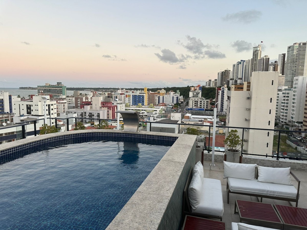 Genießen Sie Ihren Aufenthalt in Natal in einer hochwertigen Penthouse-Wohnung im 11. Stock mit Meerblick, zwei Schlafzimmern, komplett eingerichtet, Klimaanlage in den Schlafzimmern, Gourmet-Bereich mit überdachter Terrasse, privatem Pool und privatem Grill. Wir bieten Kabel-TV, WLAN, alle Küchenutensilien, in Ponta Negra, 400 Meter vom Strand entfernt, tolle Lage, in der Nähe der besten Restaurants, Bars, Einkaufszentren, Bäckereien und Cafés, im Herzen von Ponta Negra, plus eine private Garage.