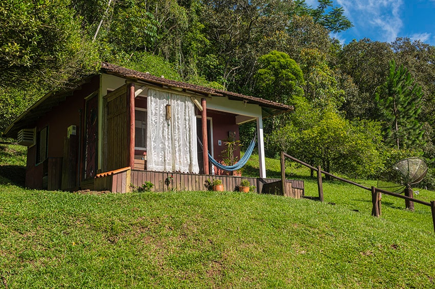 Chalé wurde entworfen, um ein gemütliches Erlebnis zu bieten, um wunderbare Tage inmitten der Natur zu genießen. Ein perfekter Ort, um eine saubere Luft zu atmen und sich am Rauschen des Bachs zu entspannen. Chalé ist ein Loft, ideal für ein Paar mit Kindern. Es verfügt über 2 Queensize-Betten und eine Schlafcouch, in einem offenen Raum ohne Privatsphäre.