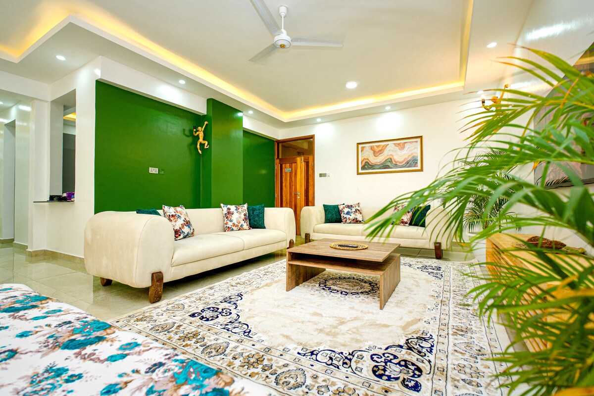 Die ganze Gruppe genießt von diesem zentral gelegenen Ort aus einfachen Zugang zu allem. 2 Gehminuten vom Strand und einem Restaurant im Restaurant entfernt. 3 Fahrminuten zum Weißland, zum Einkaufszentrum der Stadt und zum Zentrum von Nyali. einfacher Zugang zu öffentlichen Verkehrsmitteln. Gut ausgestattete Küche. Sehr sauber und gesichert. kostenloser Parkplatz. mobilventilatoren und Klimaanlage in Master & Living (Bitte beachte, dass nur für AC-Nutzer zusätzliche Gebühren anfallen). reinigung nach 2 Nächten und auf Anfrage. willkommen und einen schönen Aufenthalt noch