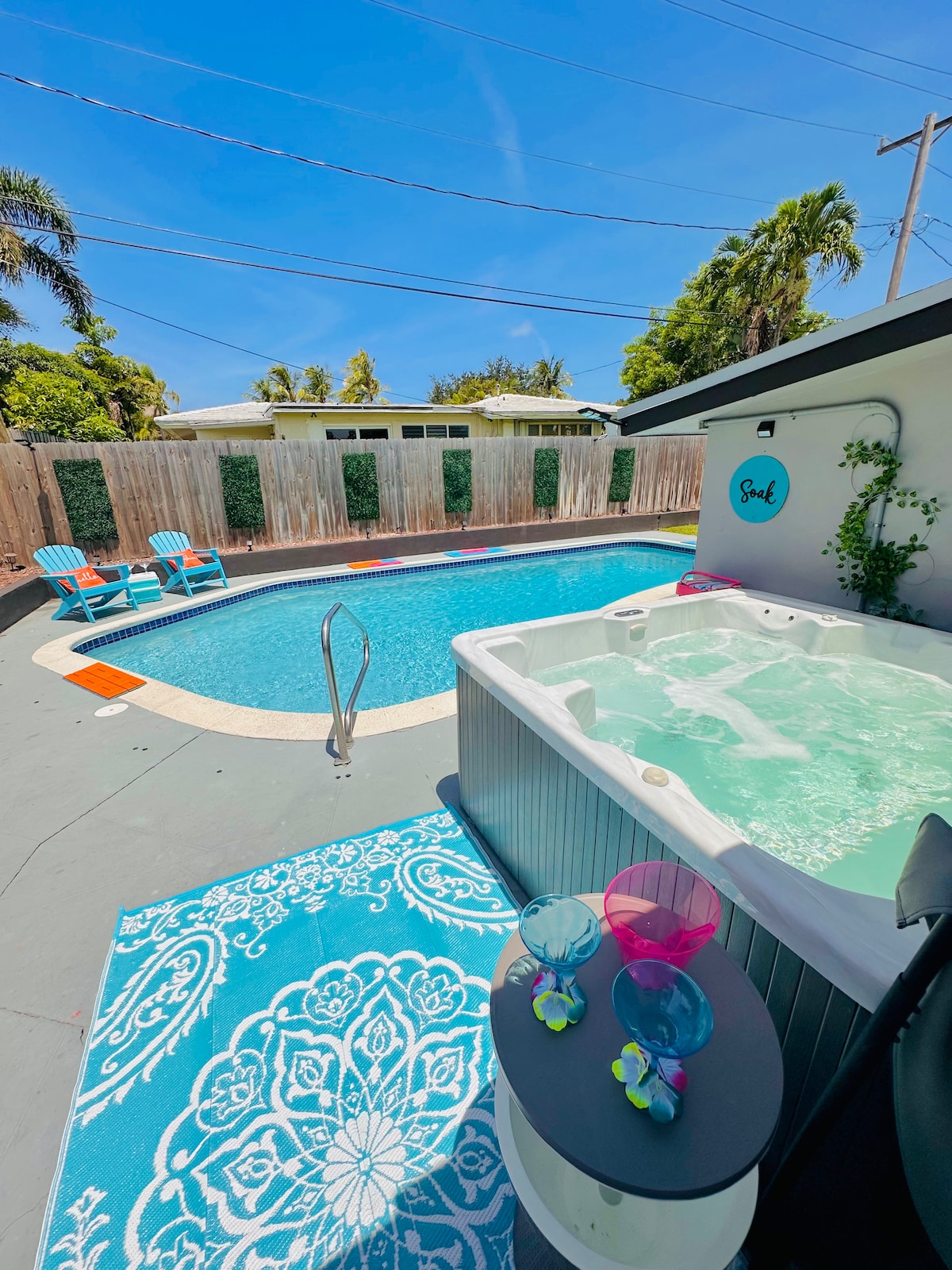 Willkommen in unserer hellen 2BR 2Bath-Oase, eingebettet im Herzen von Wilton Manors, nur wenige Minuten von sonnigen Stränden entfernt. Dieser Zen-Hafen verbindet farbenfrohes Design mit einer reichen Ausstattungsliste, perfekt für deinen Traumurlaub. Genieße die geräumigen Schlafzimmer mit Kingsize-Betten, einen offenen Wohnbereich, eine voll ausgestattete Küche, einen ruhigen Zen-Garten mit einem privaten Whirlpool und einen brandneuen beheizten Pool. Bleibe mit High-Speed-WLAN in Verbindung, entspanne dich mit Smart-TVs und genieße kostenlose Parkplätze. Buche jetzt für ein unvergessliches Erlebnis!