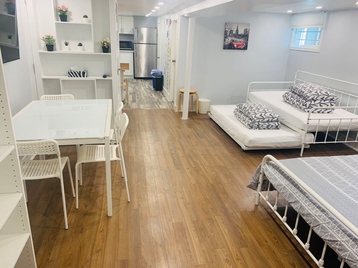 Helle, luftige, moderne und neue Einheit mit eigenem Eingang in der Innenstadt von Toronto. Eine Minute zu Verkehrsmitteln, Supermarkt, Bäckereien, Apotheken und allen anderen Annehmlichkeiten. 30 Minuten mit den öffentlichen Verkehrsmitteln in die Innenstadt und 25 Minuten nach Yonge und Eglinton. Die Unterkunft wurde kürzlich mit einer kleinen Terrasse für den Außenbereich renoviert. Die Einheit ist unabhängig und verfügt über eine eigene Küche, ein Badezimmer und eine Waschküche. Rauchen im Gebäude nicht erlaubt.