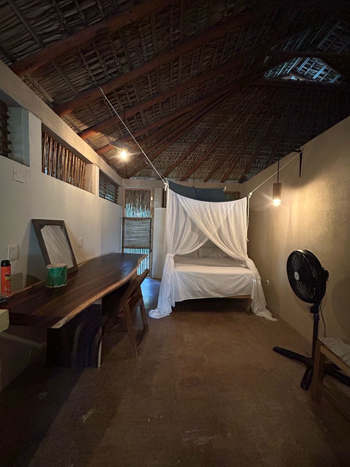 An diesem Ort aufzuwachen ist ein Traum! Das Haus liegt direkt am Strand des Meeres, um jeden Tag die besten Sonnenuntergänge zu genießen. Es hat zwei Ebenen. Das Schlafzimmer befindet sich oben sowie der Arbeitsplatz (Starlink) und Hängematten zum Ausruhen. Die Decke ist eine tolle Palapa. Das Haus verfügt über einen kleinen privaten Pool, von dem aus du die beste Aussicht über Playa Mermejita genießen kannst. Das Haus ist sehr offen, um die Frische des Windes und die beste Aussicht zu genießen.