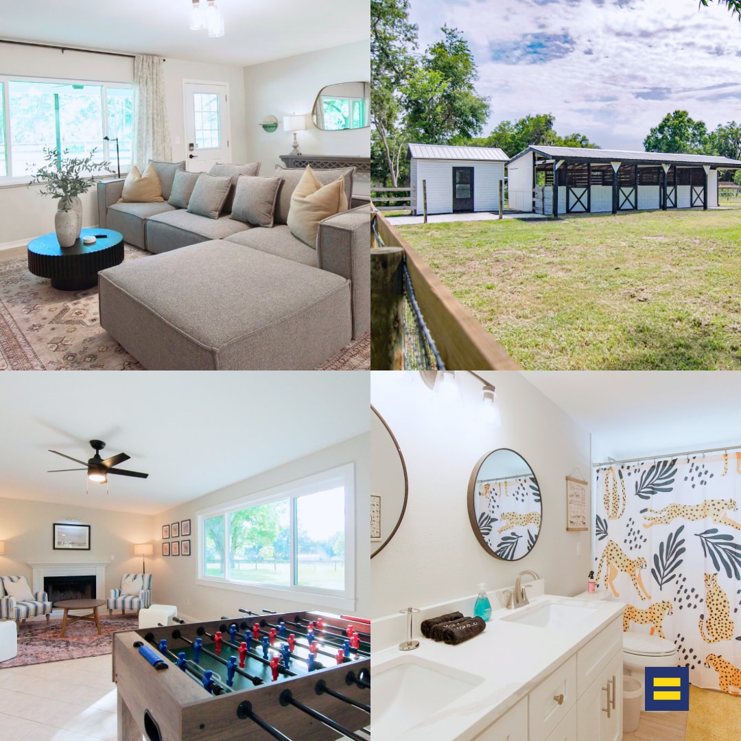 Erlebe die Gelassenheit, auf einer Pferdefarm aufzuwachen, während du nur wenige Minuten von wichtigen Sehenswürdigkeiten wie dem World Equestrian Center (4 Meilen), dem Silver Springs State Park (12 Meilen) und einer Vielzahl anderer natürlicher und unterhaltsamer Sehenswürdigkeiten entfernt bist. Dieses 521 Quadratfuß große Ferienhaus wurde 2021 erbaut und verfügt über den Komfort und die Annehmlichkeiten, die du in deinem eigenen Zuhause hast. Entspanne dich inmitten der Eichen und der umliegenden Pferdeweiden …oder bringe dein eigenes Pferd mit, um es auf einer privaten Weide außerhalb des Ferienhauses unterzubringen (extra).