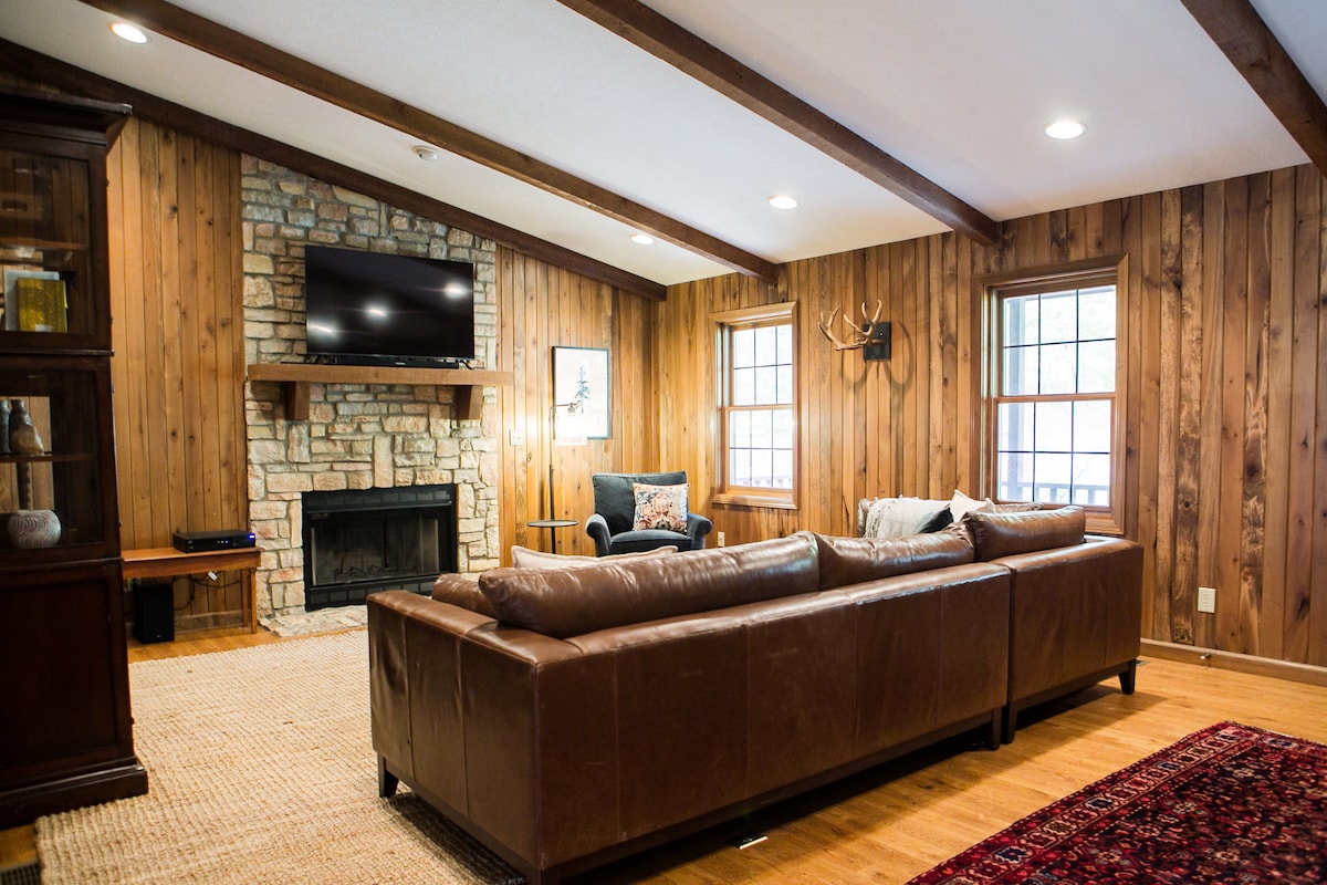Hoch im Wald im Herzen von Mohican gelegen, verfügt dieses abgelegene 3-Bett-Rustic-A-Frame auf einem 22 Hektar großen privaten Grundstück über einen Whirlpool und einen Feuerring, der von hoch aufragenden Bäumen umgeben ist. Im Inneren findest du eine Küche, ein Wohnzimmer, ein Badezimmer und ein Schlafzimmer im Erdgeschoss und ein Loft-Schlafzimmer im zweiten Stock, das auf das Wohnzimmer blickt. Die untere Ebene verfügt über einen Billardtisch, ein Schlafzimmer und ein komplettes Badezimmer. Hinweis zur Einfahrt: Die Einfahrt ist lang und steil. Im Winter wird ein Fahrzeug mit Allradantrieb empfohlen.