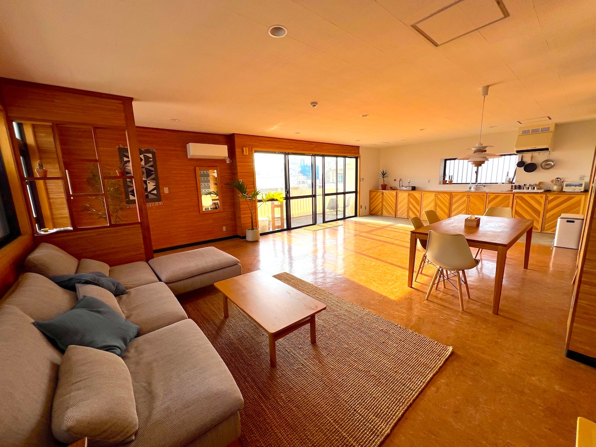 Eine Region, in der die üppige Natur weitgehend erhalten geblieben ist. Ein freistehendes Terrassenhaus im Dorf Nakijin im Norden Okinawas, das von den Bergen umgeben ist. Kostenlose Parkplätze für bis zu 3 Autos. Im gesamten Gebäude steht kostenloses WLAN zur Verfügung. Unser Hotel ist ideal für Familien und Gruppen, da es einen einfachen Kommunikationsraum bietet, der sich auch für Reisen eignet. Der Name unserer Einrichtung [Kokoro-Kukuru] leitet sich von Kukuru ab, was in der Sprache Okinawas [Herz] bedeutet. Wir bieten einen herzerwärmenden Service und Raum und bieten unseren Gästen einen Ort, an dem sie unvergessliche Erinnerungen schaffen können. Das Hotel liegt in einem ruhigen Wohngebiet mit viel Natur, aber in einem Umkreis von etwa 10 Minuten mit dem Auto befinden sich die Strände von Nagahama und Akakō, die Ruinen der Nakijin-Burg, die Insel♪ Kourijima und das Churaumi-Aquarium sowie die Bise-Fukugi-Allee, die innerhalb von 20 Minuten zu erreichen sind.♪ Genießen Sie tagsüber den Strand und die Sightseeing-Tour und verbringen Sie nachts eine entspannte Zeit in unserem Hotel. In der offenen Peninsula-Küche können Sie kochen, während Sie mit Ihrer Familie und Freunden plaudern. (Geschirr und Kochutensilien sind vollständig vorhanden) Waschmaschine und Trockner sind vorhanden. Innerhalb von 3 Minuten mit dem Auto gibt es große Supermärkte, Drogerien, Lawson und 7-Eleven. Wir stellen auch ein Außenwohnzimmer, einen Grillset und Fahrräder zur Verfügung.