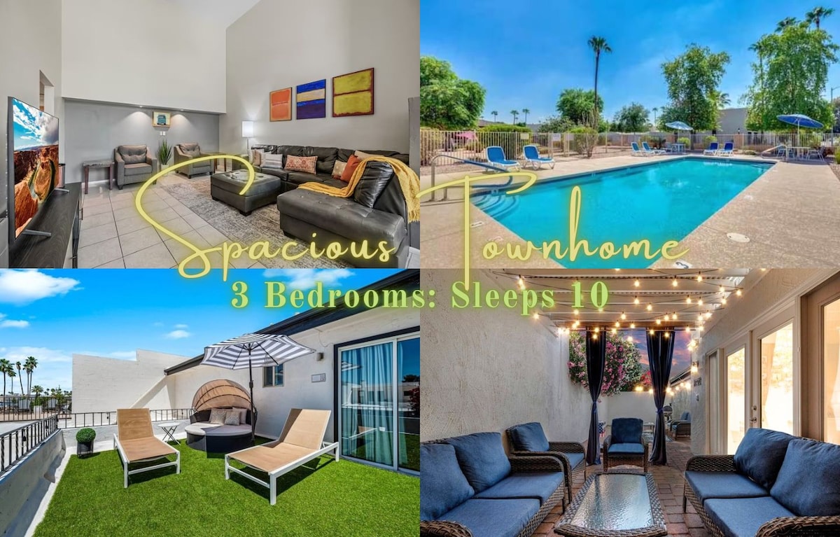 *Lage - Lage - Lage!* DAS ist ES!! Dieses trendige zweistöckige Stadthaus aus dem Jahr 1800 Quadratfuß ist der perfekte Ausgangspunkt, um AZ zu erkunden! Nur 1 Block von OldTown, bequem zu Fuß zu Restaurants, Einkaufszentrum und Nachtleben! Aktualisierte Küche, zwei Arbeitsschalter, Garage, Wäscherei und schöne PRIVATE DACHTERRASSE mit Liegestühlen und gemütlichen Sitzgelegenheiten! Gemeinschaftspool (nicht beheizt) & hundefreundlich. Schau dir unsere 5-Sterne-Bewertungen an und du kannst dir sicher sein, dass du bei uns ein außergewöhnliches Erlebnis hast.