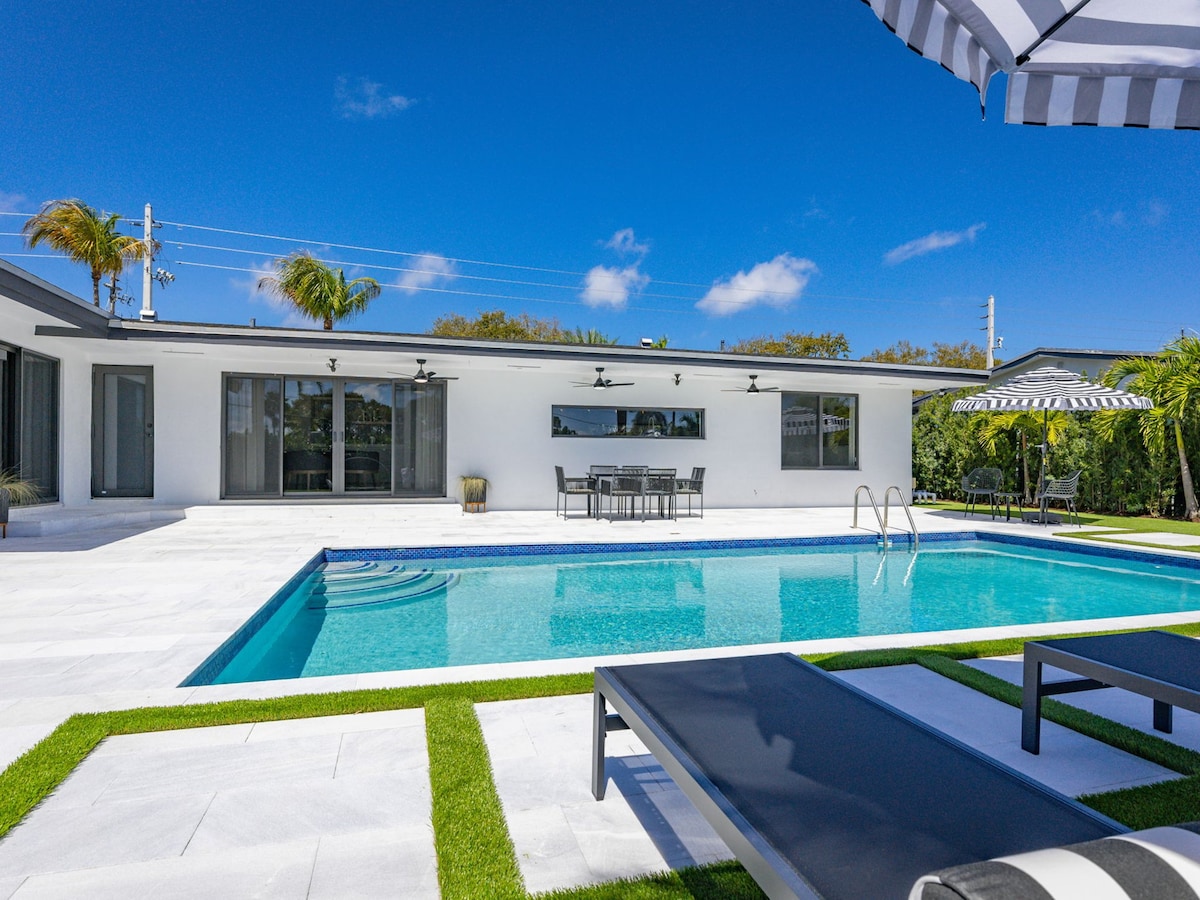 Luxuriöses Ferienhaus in Miami mit einem atemberaubenden privaten Pool, perfekt für Familien und Gruppen. Diese moderne Unterkunft mit 5 Schlafzimmern und 3 Bädern verfügt über einen offenen Grundriss, eine Designerküche, stilvolle Wohnbereiche und einen nahtlosen Übergang zwischen Innen- und Außenbereich. Entspanne dich am Pool unter Palmen mit Liegestühlen und schattigen Sitzgelegenheiten oder verbringe deine Zeit in der geräumigen Oase im Hinterhof, nur wenige Minuten von den Stränden, Restaurants und Ausgehmöglichkeiten Miamis entfernt.