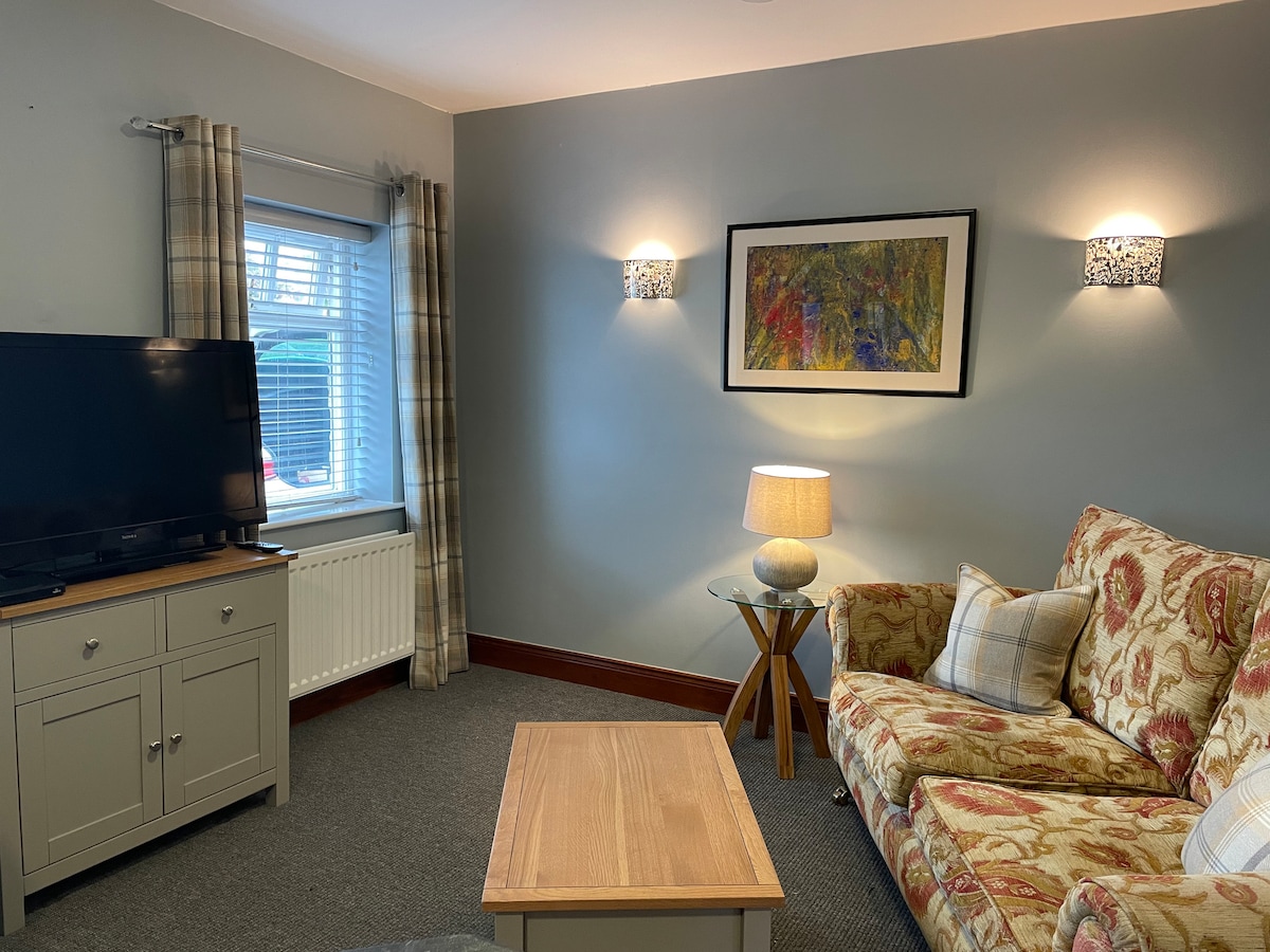 Stargazers Wohnung, eines von zwei Häusern eine private Fahrt hinunter. Eine ruhige, malerische Lage. Kein Lärm oder Lichtverschmutzung und der dunkelste Himmel Europas. Genieße die gesamte oberste Etage mit offener Lounge/Küche und historischen Bücherregalen. Schlafzimmer mit Rolltop-Badewanne, Kingsize-Bett, eigenem Badezimmer. Es ist ein fabelhafter Ort! Separater Eingang über ein schönes Glasatrium mit atemberaubender Aussicht. Private Sternbeobachtungsterrasse & Teleskop Maximal 2 Gäste Gemeinschaftsgarten. Haustiere in Betracht gezogen, bitte frage zuerst.