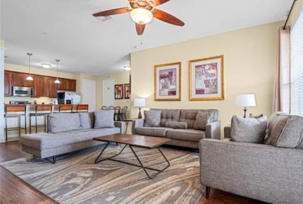 Entfliehe in das Herz von Orlandos aufregenden Attraktionen. Unsere gemütliche 3-Zimmer-Wohnung ist nur wenige Minuten von den aufregenden Fahrgeschäften und Unterhaltungsmöglichkeiten von Disney & Universal entfernt. Nach einem Tag voller Abenteuer kehrst du nach Hause zurück und genießt den Komfort von kostenlosen Parkplätzen, einer voll ausgestatteten Küche, einer Klimaanlage und Zugang zu den Pools und dem Fitnessraum. Die Waschmaschine/der Trockner in der Einheit ermöglicht es dir, leicht zu packen und Gepäckgebühren zu minimieren. Egal, ob du Nervenkitzel oder Entspannung suchst, unsere Eigentumswohnung ist perfekt für deinen unvergesslichen Urlaub.