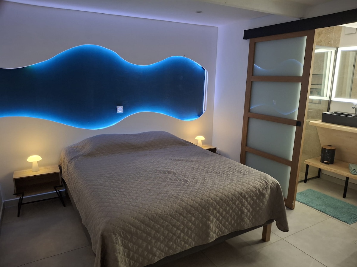 Als leidenschaftliche Liebhaber der 90er Jahre haben wir diesen kleinen nostalgischen Kokon geschaffen, um diese Kultzeit noch einmal zu erleben. Da wir nicht immer Zeit haben, sie zu genießen, stellen wir sie zur Verfügung, um diese einzigartige Atmosphäre zu teilen. Dieses gemütliche Studio von 15 m² verbindet Komfort und Retro-Stil: hochwertiges Schlafsofa, ausgestattete Küche, separates Bad, reversible Klimaanlage. Wi-Fi, Netflix, Amazon, Disney+ inklusive. Kostenloses Frühstück für einen praktischen und warmen Aufenthalt, perfekt für einen gemütlichen Zwischenstopp