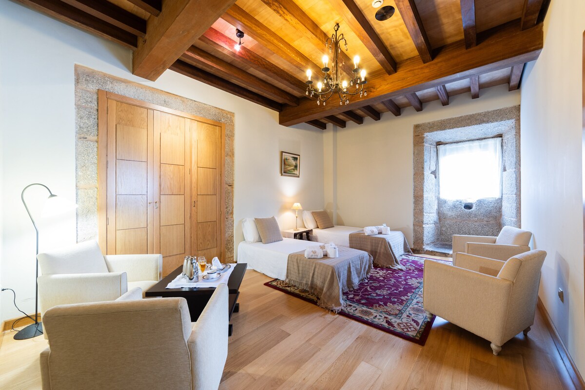 Dieses von der Vía de la Plata inspirierte Zimmer ist ideal für drei Personen. Es verfügt über zwei Einzelbetten und eine Schlafcouch, einen Arbeitstisch und einen begehbaren Kleiderschrank. Das Badezimmer ist typisch für das Zimmer und verfügt über eine thermostatische Dusche, Körpergel, Shampoo und Haartrockner. Im Zimmer gibt es auch einen Wassererhitzer für die Nutzung der Gäste. Die Einrichtungen verfügen über eine Waschküche, die Kunden zur Verfügung steht.