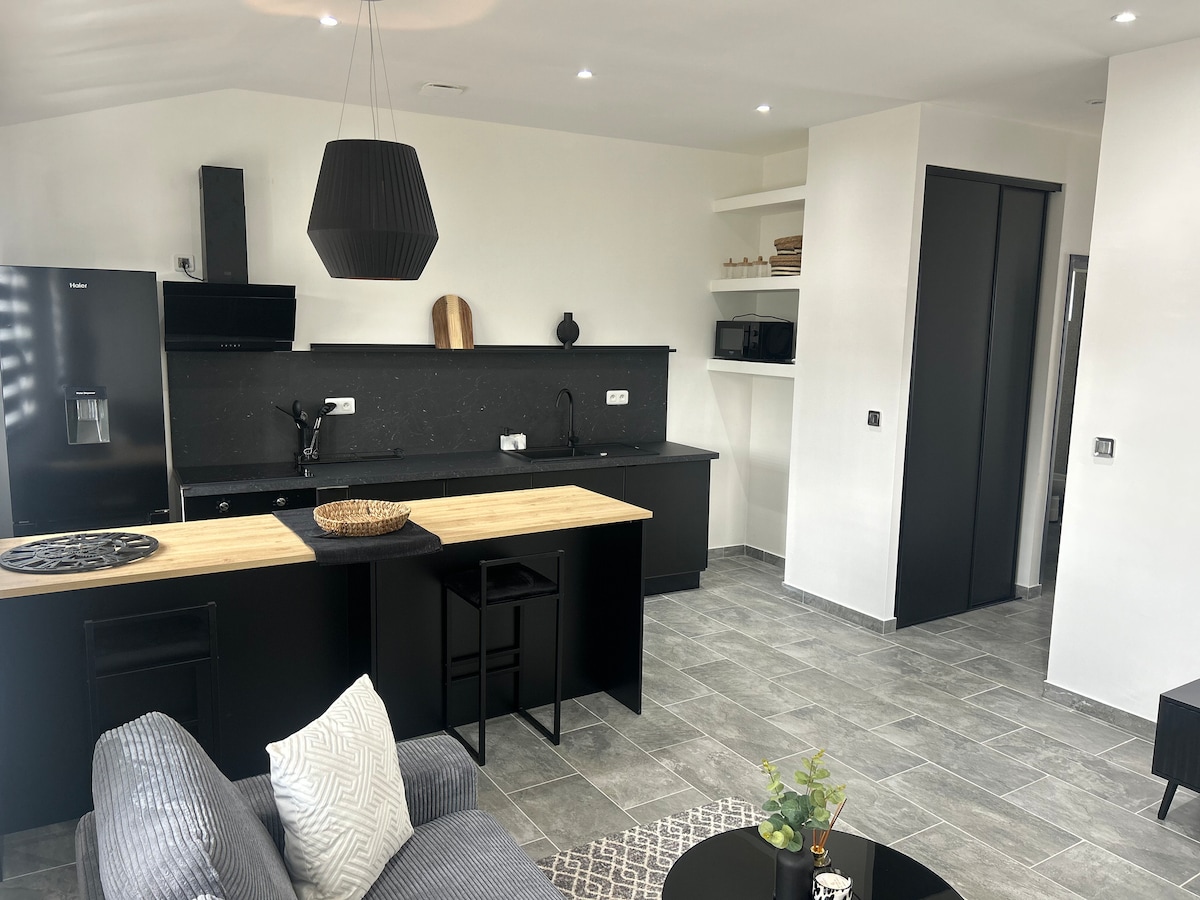 Entspannen Sie sich in dieser ruhigen und eleganten Unterkunft. Jedes Detail wurde sorgfältig durchdacht, um Praktikabilität und Ästhetik zu verbinden: eine voll ausgestattete Küche, um Ihren Gaumen zu verwöhnen, ein gemütlicher Essbereich und ein gemütliches Wohnzimmer mit einem TV für Ihre Momente der Entspannung. Das sehr schöne Zimmer lädt zum Entspannen ein, und das moderne Bad bietet Ihnen allen notwendigen Komfort. Egal, ob Sie einen ruhigen Raum für die Telearbeit oder eine Oase der Ruhe suchen, um neue Energie zu tanken.