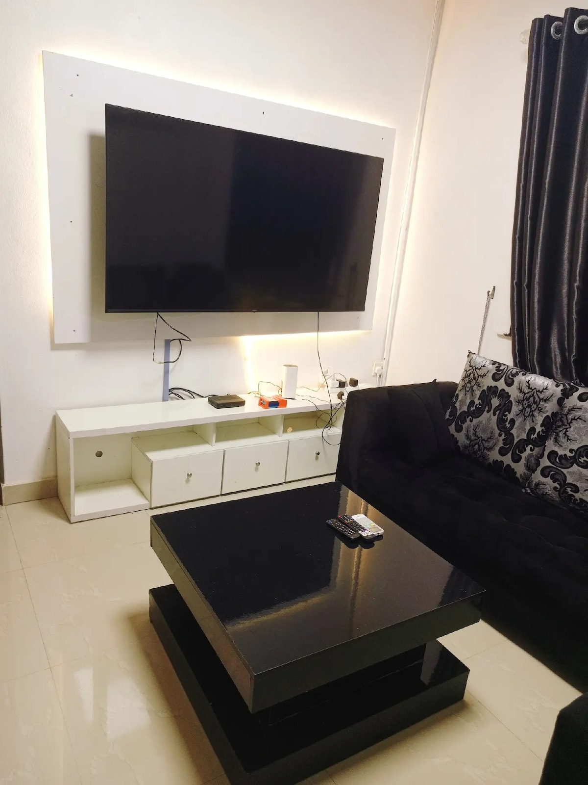 Standard ensuite room with semi orthopedic super king size comfortable mattress, modern bathroom with water heater. Unlimited fast WI-FI, 43inches Smart Tv in the bedroom and 55 inches Smart Tv in the sitting room, Netflix, YouTube, DSTV, Smoke alarm, 24/7 electricity with Band A supply frm the grid make my place unique wit no Blackout, Cctv, maximum security, 10min to International Airport and 5min to Domestic Airport. Sparkling clean, spacious and well organised Apartment for your comfort
