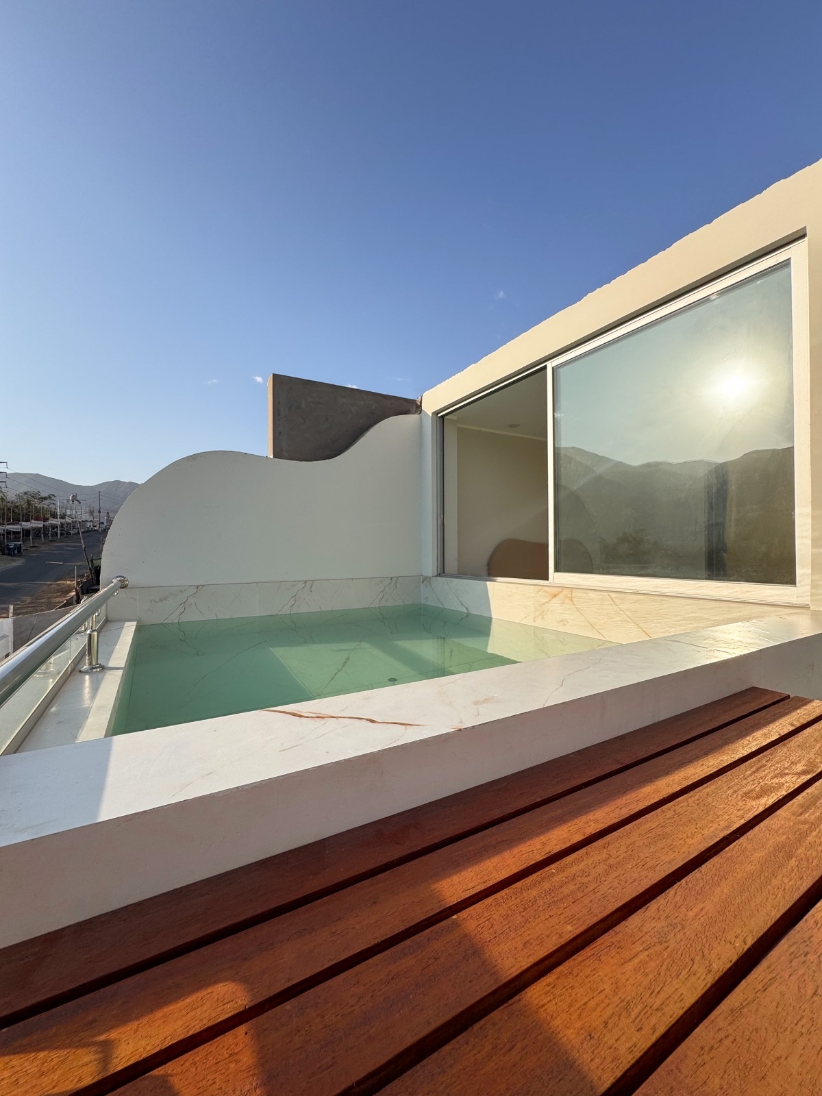 An exclusive house with fine finishes and first-class decoration. We are located 20 minutes from the city of Trujillo. Here you will enjoy nature and the tranquility necessary for you and your family. We have all the amenities: heated pool, hot water, generator set, rooms with full bathroom, seniors' room, grill area, oven, hammock, swing, games, etc. Casa Amber awaits you and we are sure that you will not hesitate to return with us.