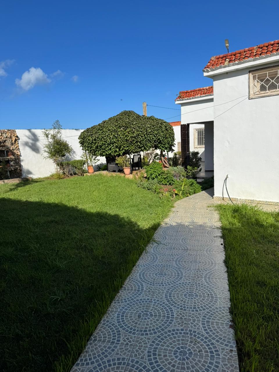 Maison lumineuse et calme à 1,6 km de la mer, idéale pour un séjour en famille. Elle comprend deux chambres, un salon confortable, une cuisine. Grand jardin et garage pour deux voitures. Quartier paisible avec gardien de nuit et caméra. À proximité : Casablanca (80 km), Azemmour (18 km) et El Jadida (35 km). Parfaite pour ceux qui recherchent tranquillité, sécurité et accès rapide au littoral.