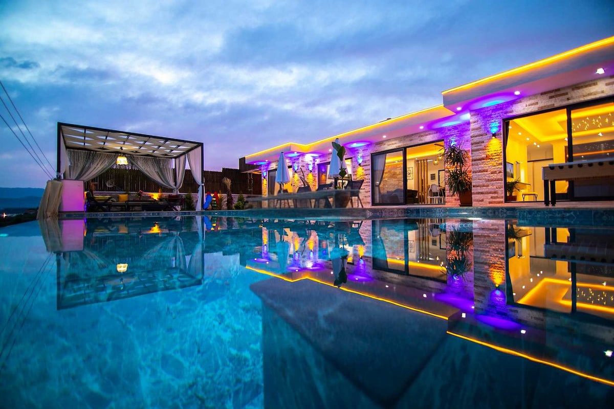 Diese einzigartige Unterkunft hat ihren eigenen Stil. Unsere Villa verfügt über 2 große Pools im Innen- und Außenbereich in Kajaköy, Fethiye. Innenpoolheizung steht zur Verfügung. Ein Whirlpool im Außen- und Innenpool ist ebenfalls vorhanden. Die Villa ist durchdacht in einem luxuriösen Konzept eingerichtet und verfügt über einen geschützten Pool. Es bietet einen herrlichen Urlaub für Flitterwochen-Paare und Atomfamilien. 10-15 Minuten zum Zentrum von Fethiye oder zum Zentrum von Ölüdeniz. Mit Privatparkplatz.