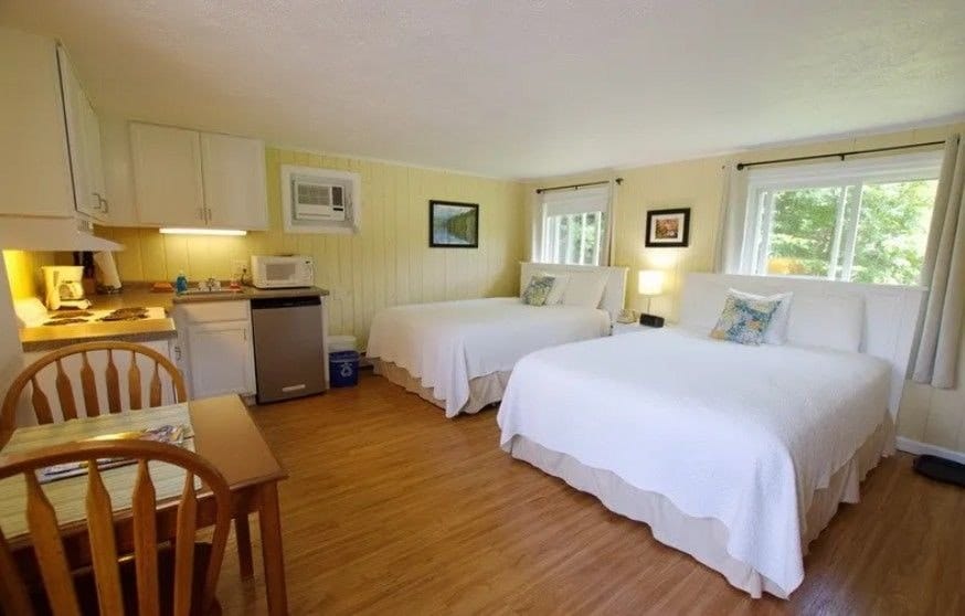 1 Queensize-Bett und 1 Etagenbett Voll ausgestattete Küche Privates Badezimmer Kabel-TV WLAN-Internetzugang Mit Zugang zum Lounge-Gebäude, das über Spielsofas, TV, eine Küche sowie eine Feuerstelle im Freien mit Grillgrills Mountain View Motel verfügt über Zimmer mit Küchenzeile. Wir befinden uns 6 Meilen nördlich von Sugarloaf in der Carrabassett Valley Region. In der Nähe von Skifahren, Wandern, Jagen und Mountainbiken. Im Sommer sind wir in der Nähe des Flagstaff Lake.