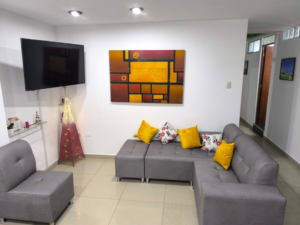 Entspanne dich im Umek House Pacasmayo! Frisches und funktionales Zuhause auf der ersten Ebene, perfekt für Ruhe oder Remote-Arbeit. Genieße einen privaten Minipool, eine ausgestattete XL-Küche und ein geräumiges und komfortables Zimmer, um Filme anzusehen, Zeit mit der Familie oder mit Freunden zu verbringen. Es verfügt über stabiles WLAN, gute Belüftung und ruhige Lage nur 10 Minuten vom Malecon entfernt. ¡Haustierfreundlich! Ihre Einbildung ist auch willkommen. Ideal für Kurztrips, Strandwochenenden oder zum Abschalten, ohne weit zu fahren. @Umekhousepacasmayo