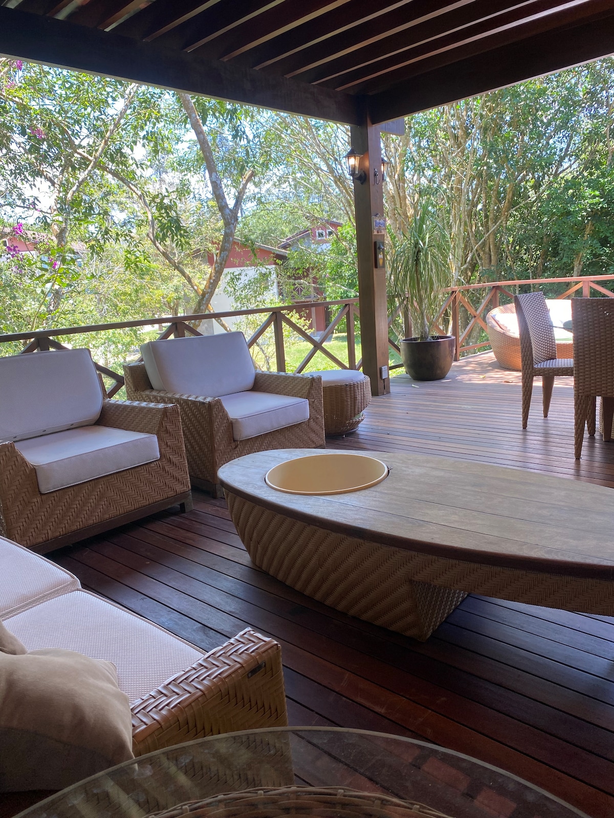 Bewaffnete Hängematte auf dem Balkon, grün auf allen Seiten und eine Stille, die in der Regel nur durch den guten Lärm der Vögel unterbrochen wird. Das Haus verfügt über vier Schlafzimmer, drei Bäder, ein in die Küche integriertes Wohnzimmer und einen Außenbereich, der zum Treffen einlädt: Neben dem Raum des Grills ist das Deck der ideale Ort, um die Sonne während des Tages zu genießen und die Sterne zu spionieren, wenn die Nacht Für kleine Gäste hat der Raum ein Backsteinhaus im Garten mit Wohnzimmer, Schlafzimmer und Küche.