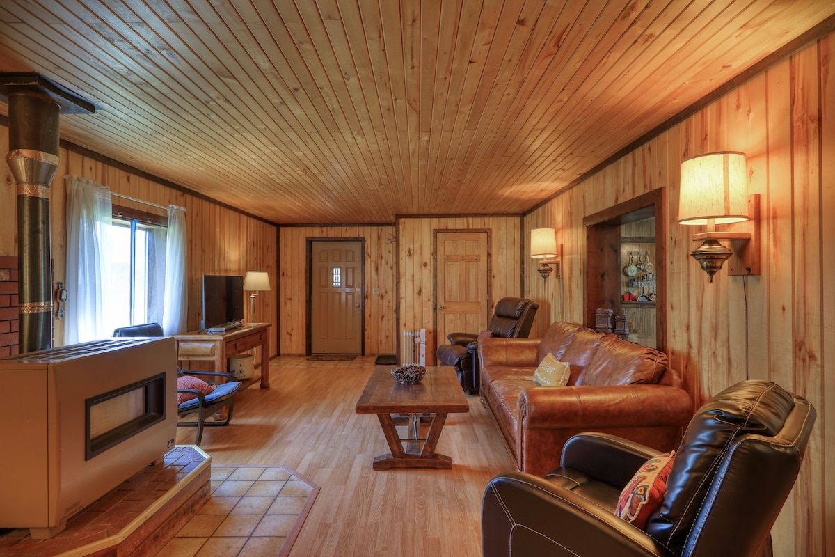 Schöne Lage in einer ruhigen Gegend. Unser einzigartiges 6-seitiges Haus mit umlaufender Terrasse fühlt sich an wie eine private Landhütte, mit Angeln, Wandern, Radfahren, Langlaufen vor der Tür. Einkaufsmöglichkeiten, Restaurants, Galerien, Golf und heiße Quellen innerhalb von 3 bis 8 Fahrminuten. Abfahrtski eine halbe Stunde entfernt. Hunde sind mit Genehmigung erlaubt (gegen Gebühr).