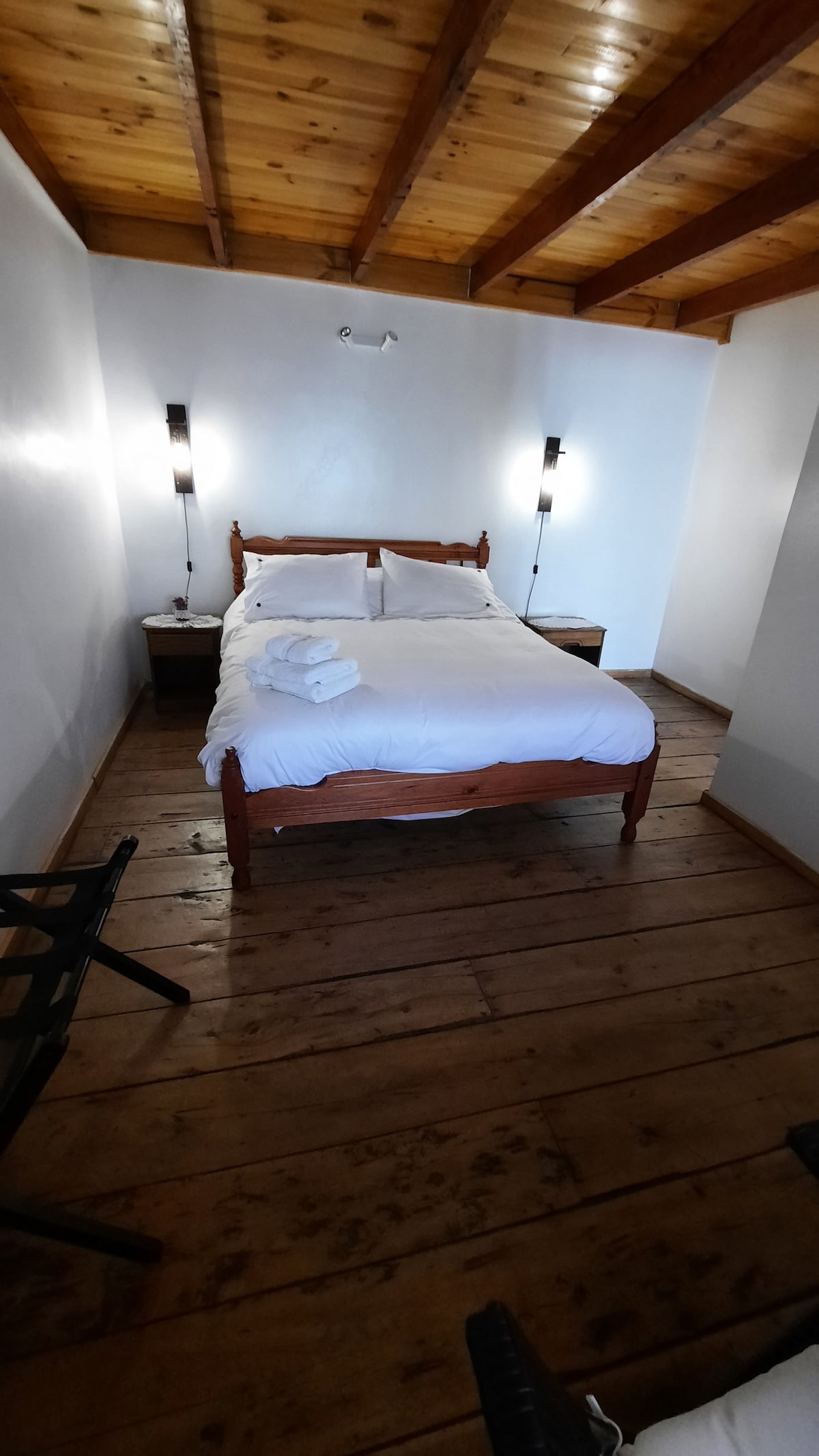 Abseits gelegener Bungalow Dieser Bungalow ist so konzipiert, dass du dich erholen kannst. Es verfügt über ein Schlafzimmer mit einem Kingsize-Bett, ein eigenes Badezimmer mit heißem Wasser und eine Terrasse. Beim Schließen der Tür wird der Raum vollständig abgedunkelt, was eine ideale Umgebung für eine vollständige Erholung garantiert. Wie die anderen hat es keine Küche, aber du kannst unsere Quinchos nutzen.
