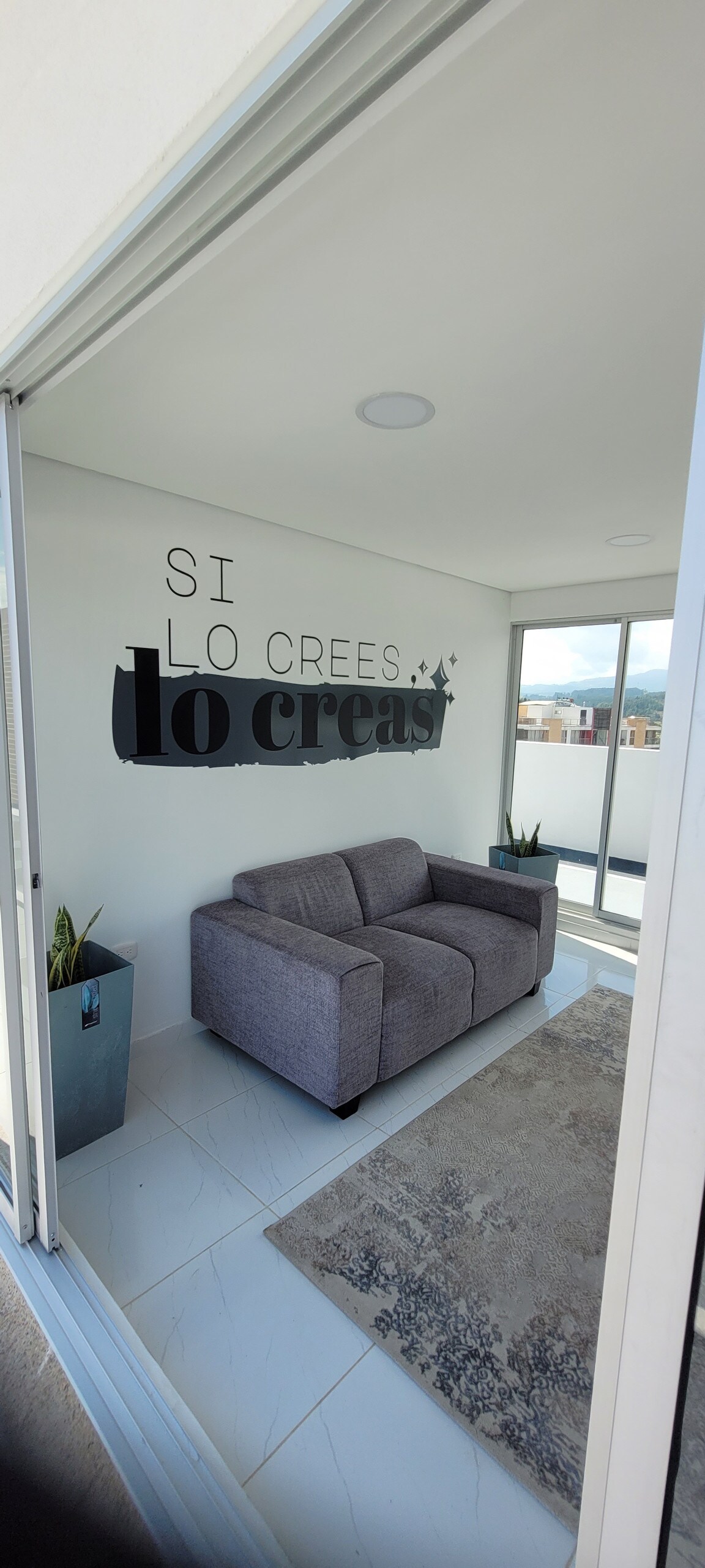 **RNT=231079** **WICHTIG**: Der Komplex verlangt, dass jede Person ein Eintrittsarmband für 5.000 COP kauft, das direkt am Torhaus zu zahlen ist. Angenehmer und moderner Raum. 3 Schlafzimmer, 2 Badezimmer, Wohn-/Esszimmer, voll ausgestattete Küche, Waschküche, Balkon mit spektakulärer Aussicht, Durchlauferhitzer. Der Komplex verfügt über eine Terrasse, einen Grillplatz, einen Lesebereich, eine Eislaufbahn, einen Spielplatz und einen beheizten Pool!