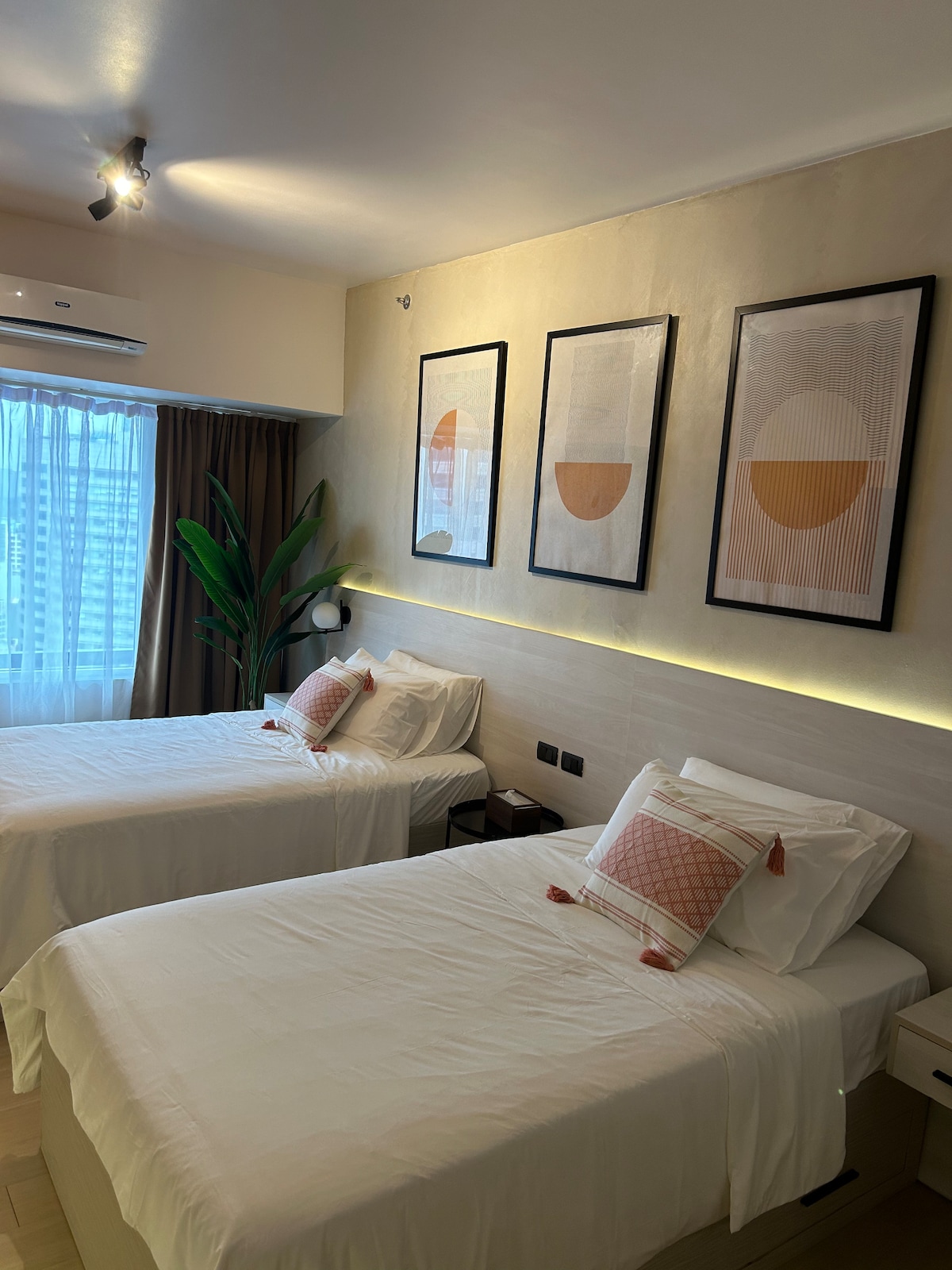 Entdecke eine versteckte Oase im pulsierenden Herzen von Makati. Mit unserem einzigartigen Konzept, das Beste aus beiden Welten zu verbinden – Einkaufszentren und Annehmlichkeiten im Resort-Stil – bieten wir dir ein unvergleichliches Erlebnis wie kein anderes. 📍Ort: Air Residences, Makati 🖥️ Kostenloses WLAN und Netflix 🍳Voll ausgestattete Küche mit Kühlschrank und Mikrowelle 8 ️⃣ maximale Gäste ❌ Haustiere und Besucher sind nicht erlaubt Nutzung des🔆 Pools 🏫: Air Mall & Rise Mall befinden sich im Erdgeschoss. Greenbelt, Landmark und Glorietta befinden sich ebenfalls in der Nähe.