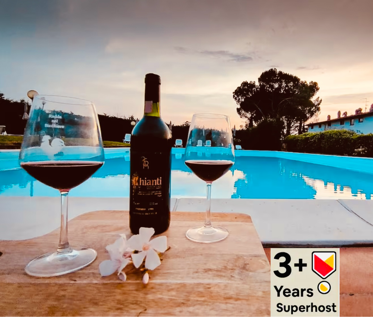 We are a Farmhouse at only 9 km from Florence in the beautiful Chianti hills with gorgeous pool and free private parking We are a small organic farm producing our own wine Chianti Classico and extra virgen olive oil Only 1 hour driving to the most important city of Tuscany such as Pisa, Siena, San Gimignano, Pienza, Monteriggioni, Lucca and Arezzo. Public transportation to Florence and Greve in Chianti (bus stop at only 200 mt from us)