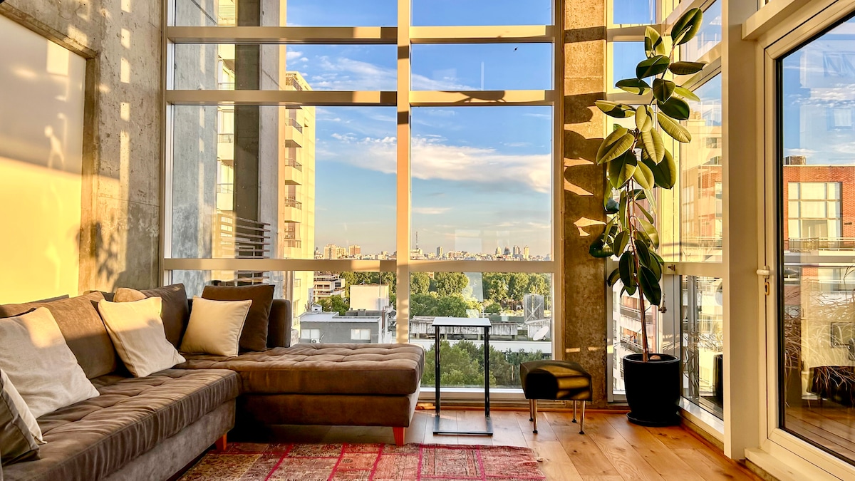 Dieses erstaunliche, zweistöckige Luxus-Loft mit 2 Schlafzimmern, Sonnenaufgang und Flussblick im 27. Stock des unverwechselbaren Palermo Uno Hochhauses wird dich mit Stil und Licht blenden. Check-in: 14:00 Uhr & Check-out: 11:00 Uhr. Wenn du die Wohnung bereits am Vortag gebucht hast, kannst du bereits ab 8:00 Uhr einchecken. Ein Check-in zwischen Mitternacht und 8:00 Uhr ist auch dann NICHT möglich, wenn du bereits für die Vortage gebucht hast. Solltest du Zweifel bezüglich der Ankunft haben, lass es uns bitte wissen, bevor du eine Buchung vornimmst. Bei Bedarf können wir dein Gepäck nach 9:00 Uhr aufbewahren.