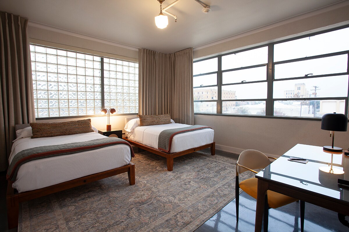 Komm und übernachte im Greyhound Inn, einem Boutique-Hotel, das von einem Busbahnhof im Herzen der Innenstadt von Tyler, Texas, neu erfunden wurde. Entspanne dich in einem unserer 9 Zimmer, die Geschichte mit modernem Komfort verbinden und von einem kontaktlosen Self-Check-in-System für zusätzliche Leichtigkeit profitieren!